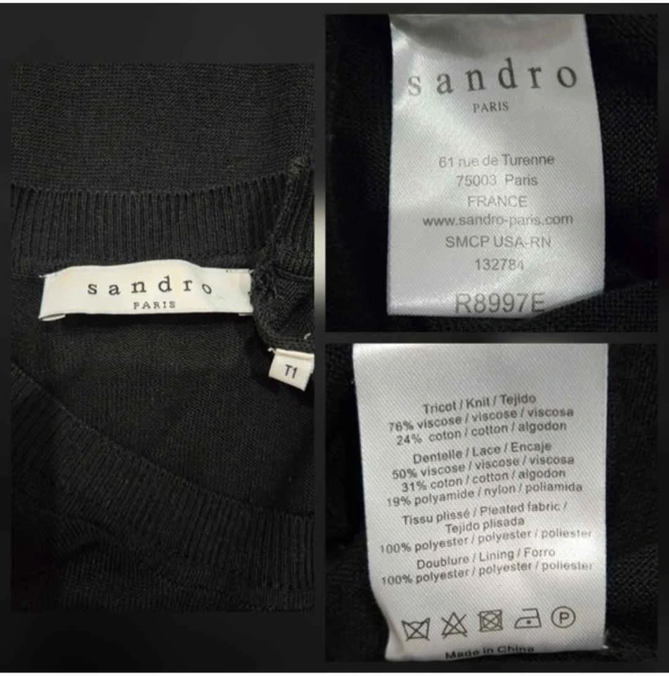 π Sandro Paris Scoop Neck Dress With Pleated Hem Size XS/S