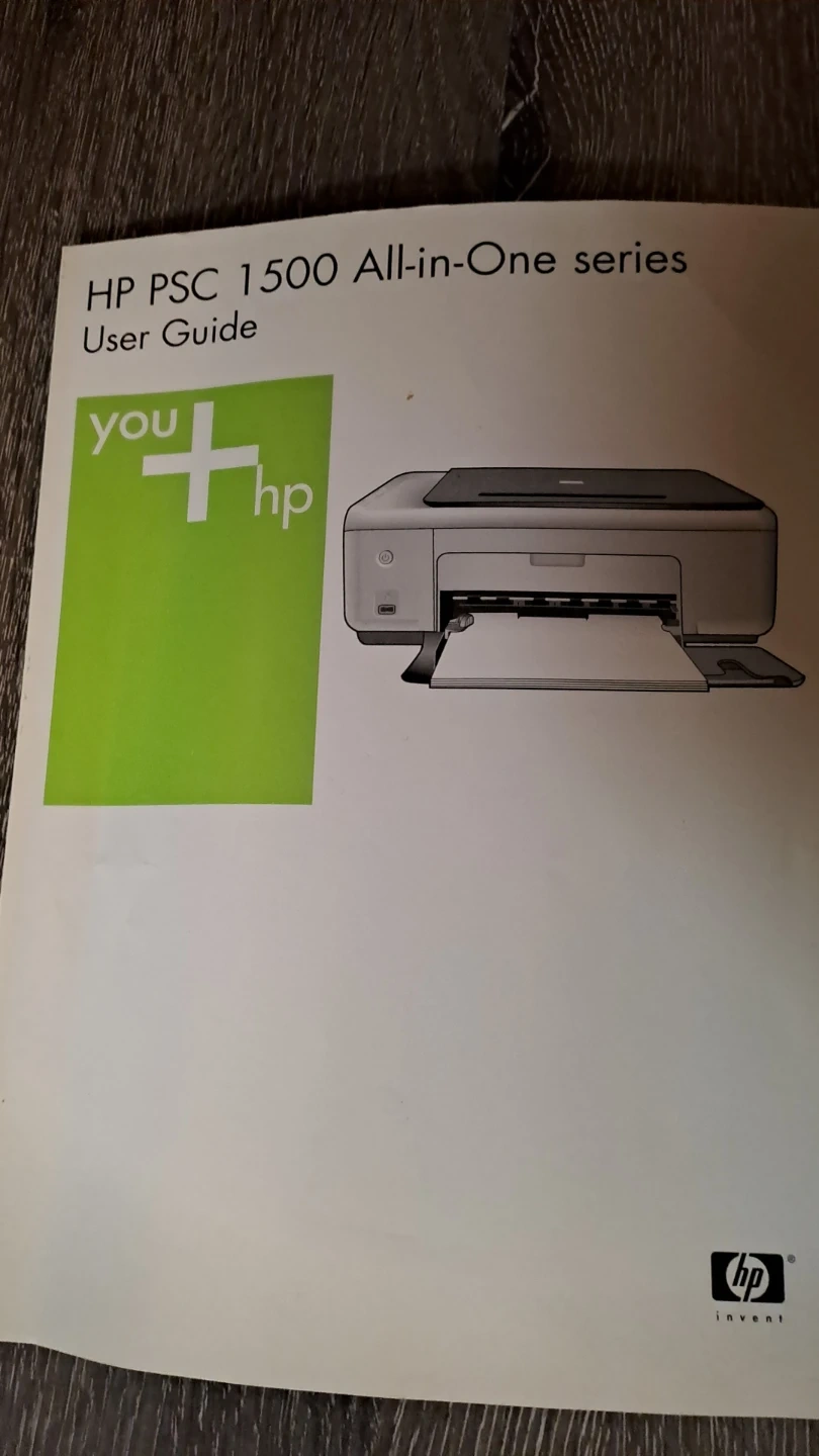 This HP PSC 1510xi is an all-in-one unit that functions as a printer, scanner, and copier. It features a PictBridge USB port for direct photo printing. Includes the user guide.