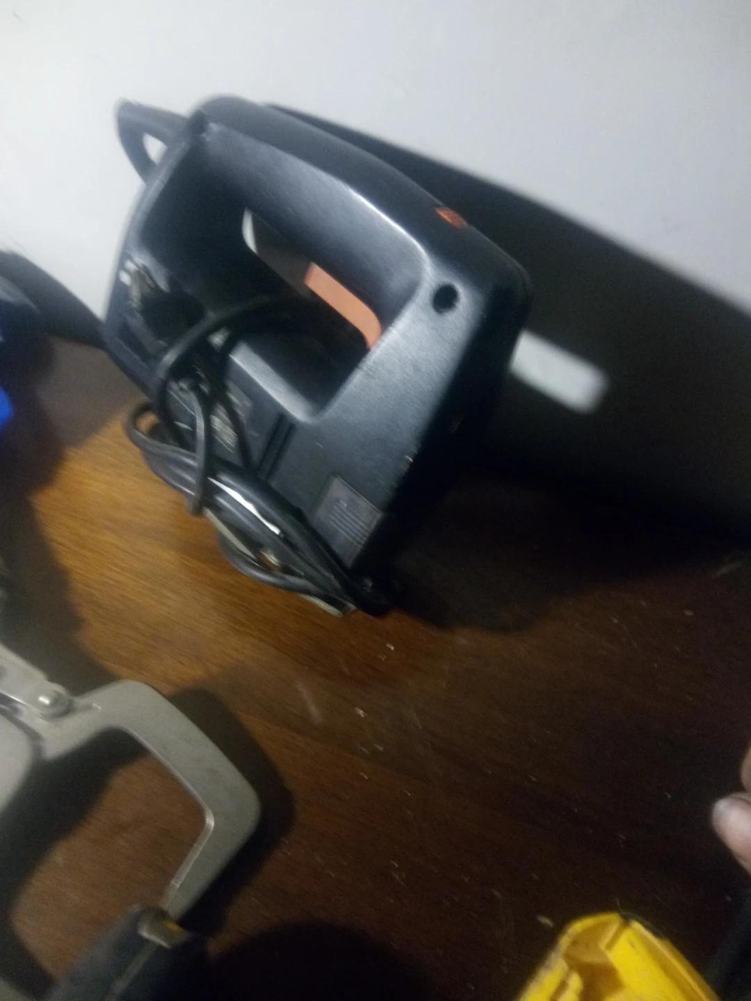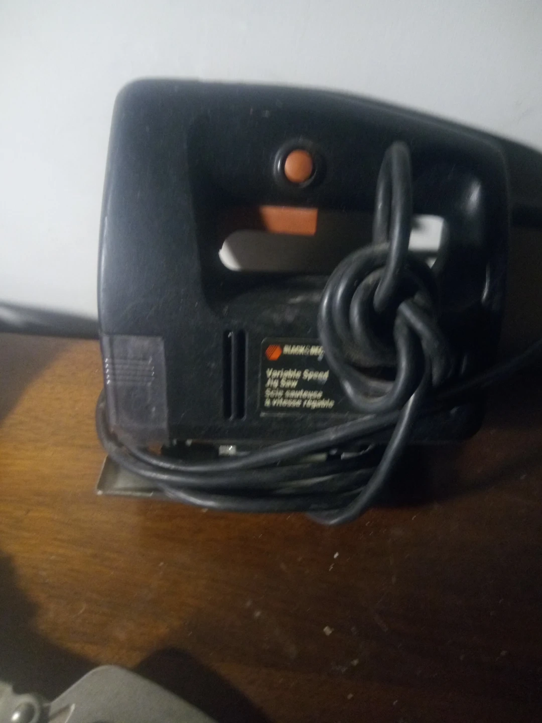This is a Black & Decker variable speed jig saw. It's a corded electric tool. Suitable for cutting various materials with adjustable speed.
