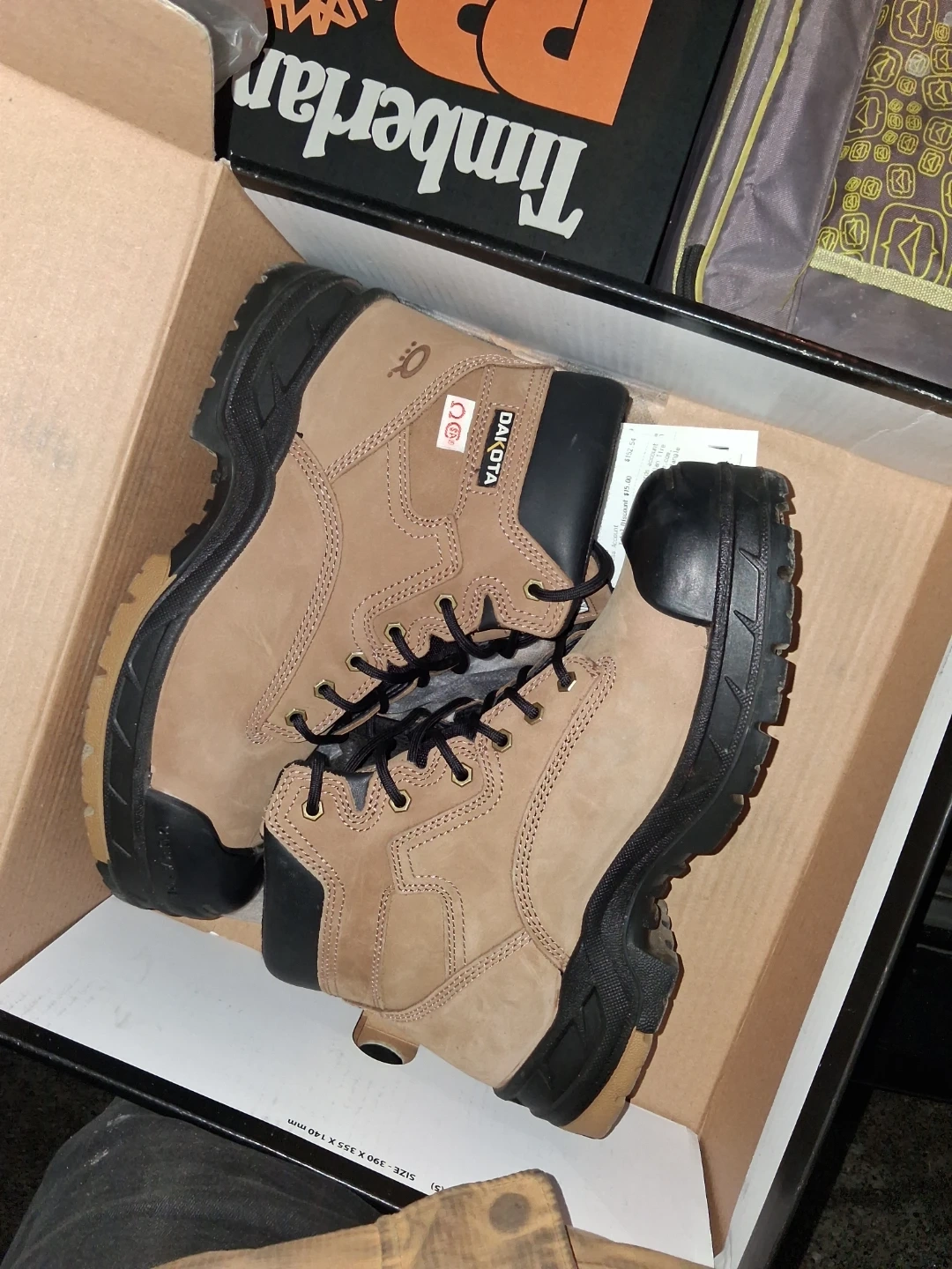 Dakota Workpro Series steel toe boots. Tan suede and black composite toe. Includes original box. Great for job sites!
