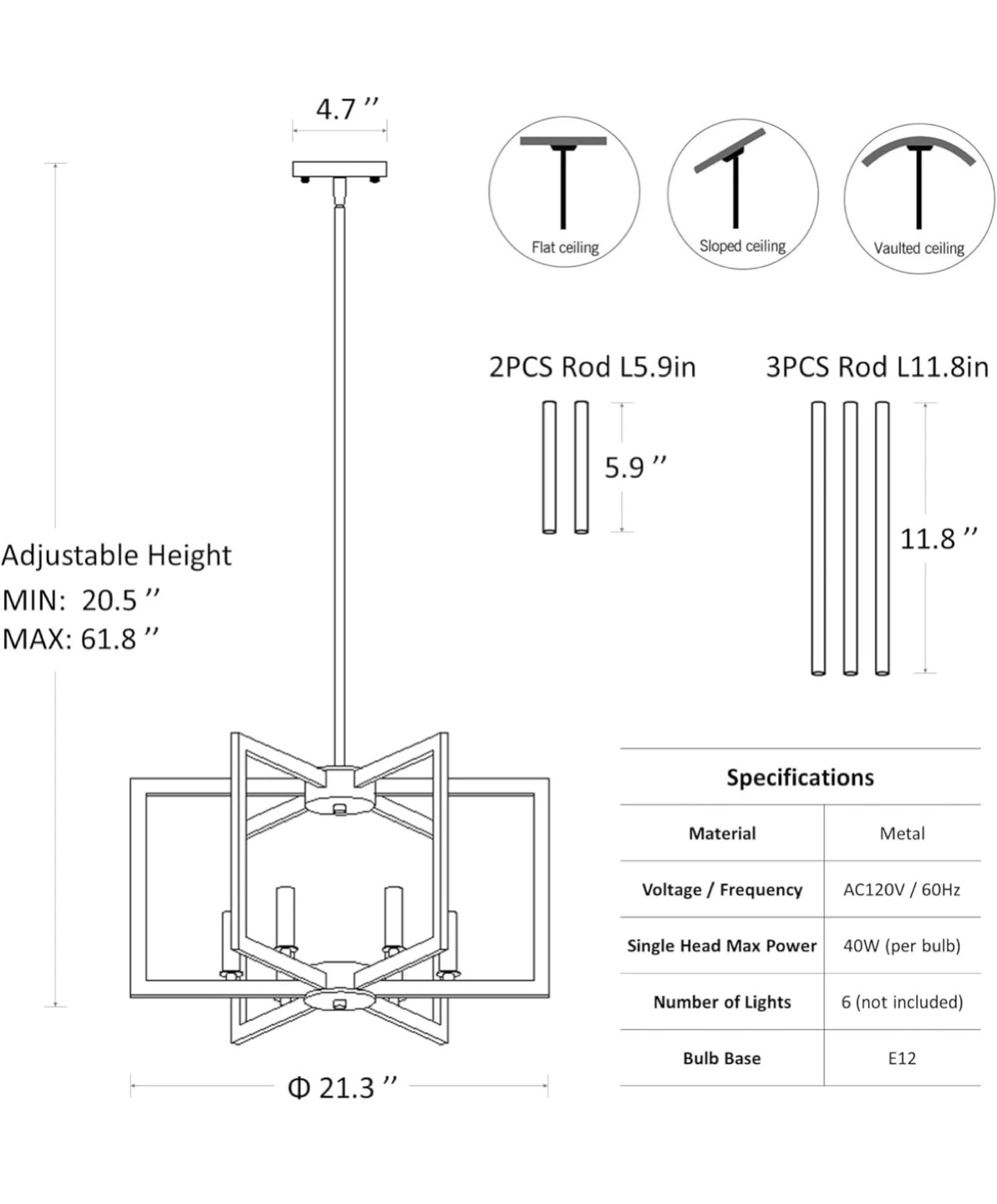 6-Light Gold Geometric Chandelier