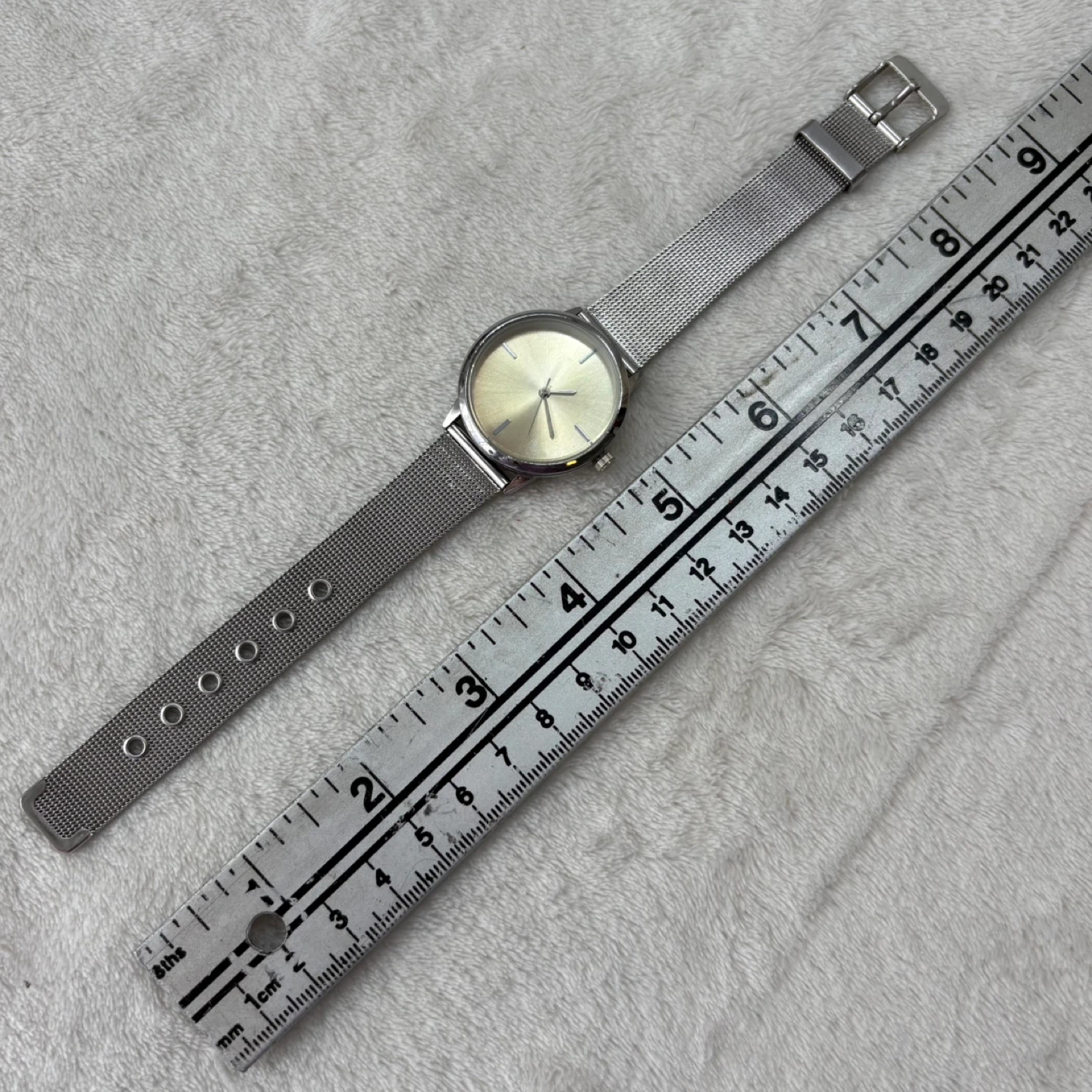 minimalist, watch, silver, mesh, stainless, steel, modern, accessory, jewelry, timepiece