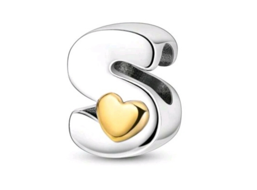 Silver charm with a gold heart on top, shaped like the letter S. Yellow Color Enamel Cubic Zirconia Silver Color Charm Fit Bracelet Necklace Bangle Beads For Diy Jewelry Making