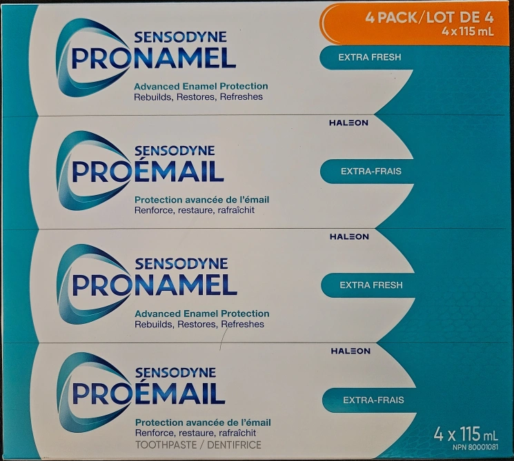Selling a brand new pack of Sensodyne Pronamel Extra Fresh toothpaste! This pack contains 4 tubes, each 115 mL.