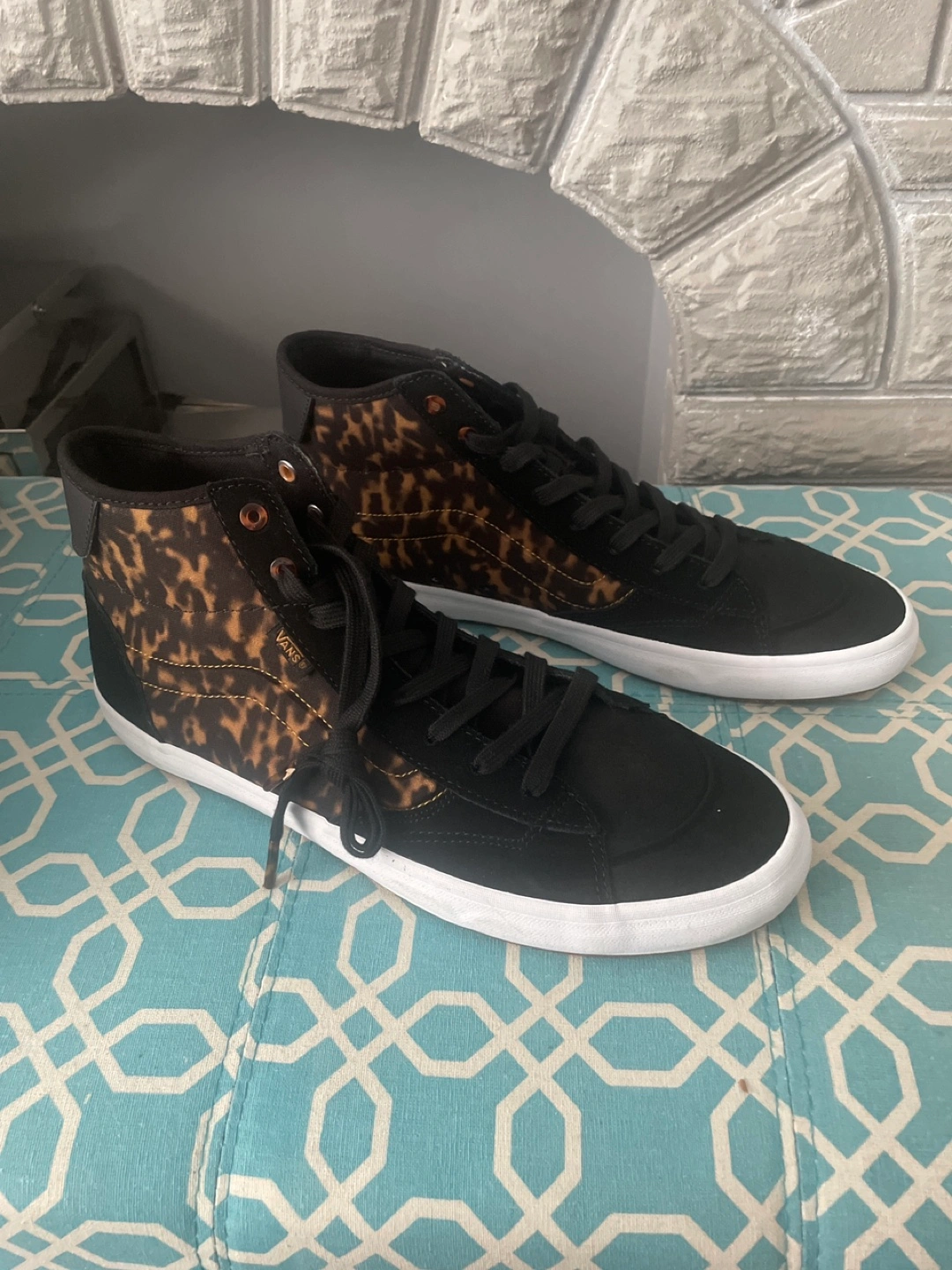 Selling a pair of Vans The Lizzie shoes in Tortoise Dark Brown/Black, size US 12 for men. They come with the original box!