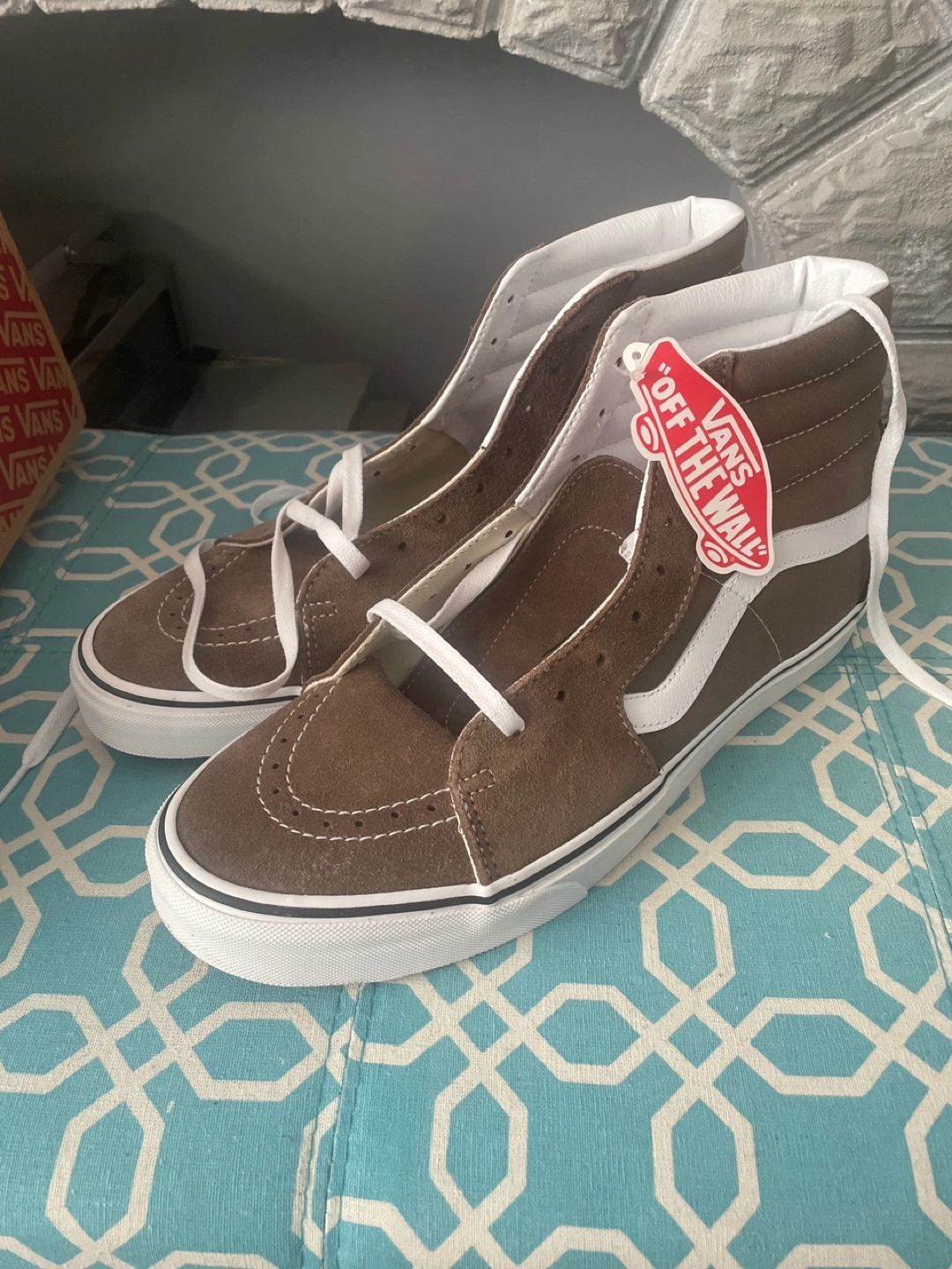 Selling a pair of brand new Vans SK8-Hi sneakers in the Color Theory Walnut colour! They are a US size 12. The box is included. Originally bought for $95!