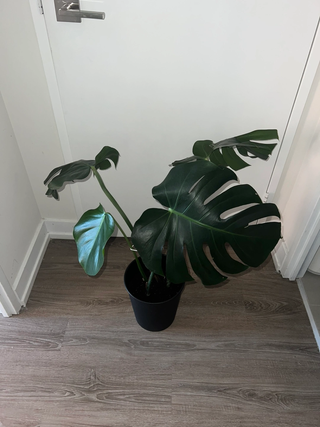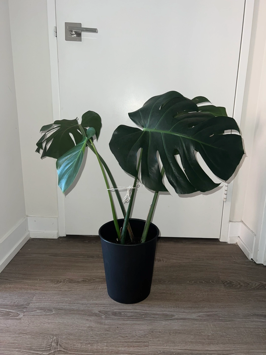 Selling a healthy monstera plant in a black pot. It's a beautiful addition to any home and easy to care for!