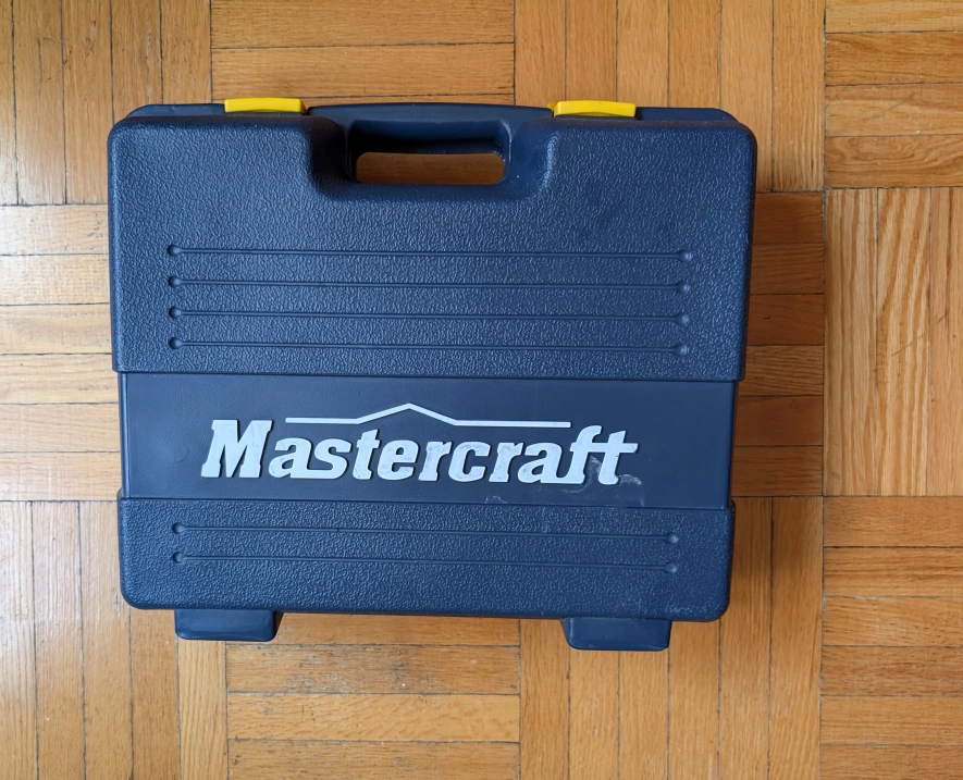 Selling a Mastercraft corded hammer drill kit with 100 pieces! Includes the drill, various drill bits, and the operating manual. Originally bought for $109.99