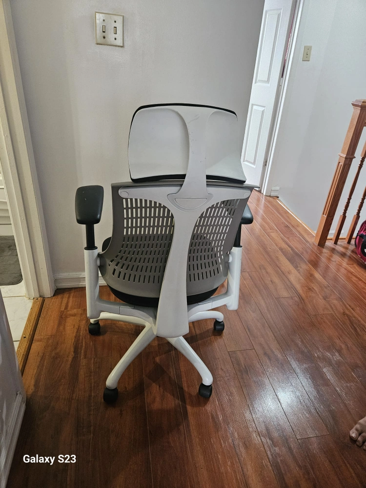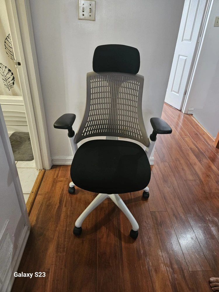Selling a comfortable ergonomic office chair! It's in great shape and ready to support you through those long workdays. The chair is black and features a mesh back for breathability, plus adjustable height and lumbar support for customized comfort