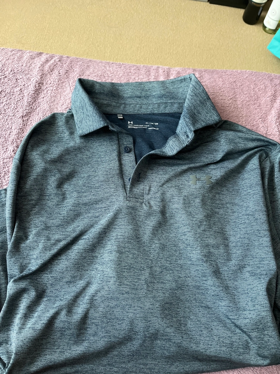 Selling an Under Armour HeatGear polo shirt in size XL. It's in great condition and perfect for staying cool during workouts or casual wear. The material is designed to be loose and breathable. Feel free to ask any questions! Got for my partner but he doesn’t like under armour 😐