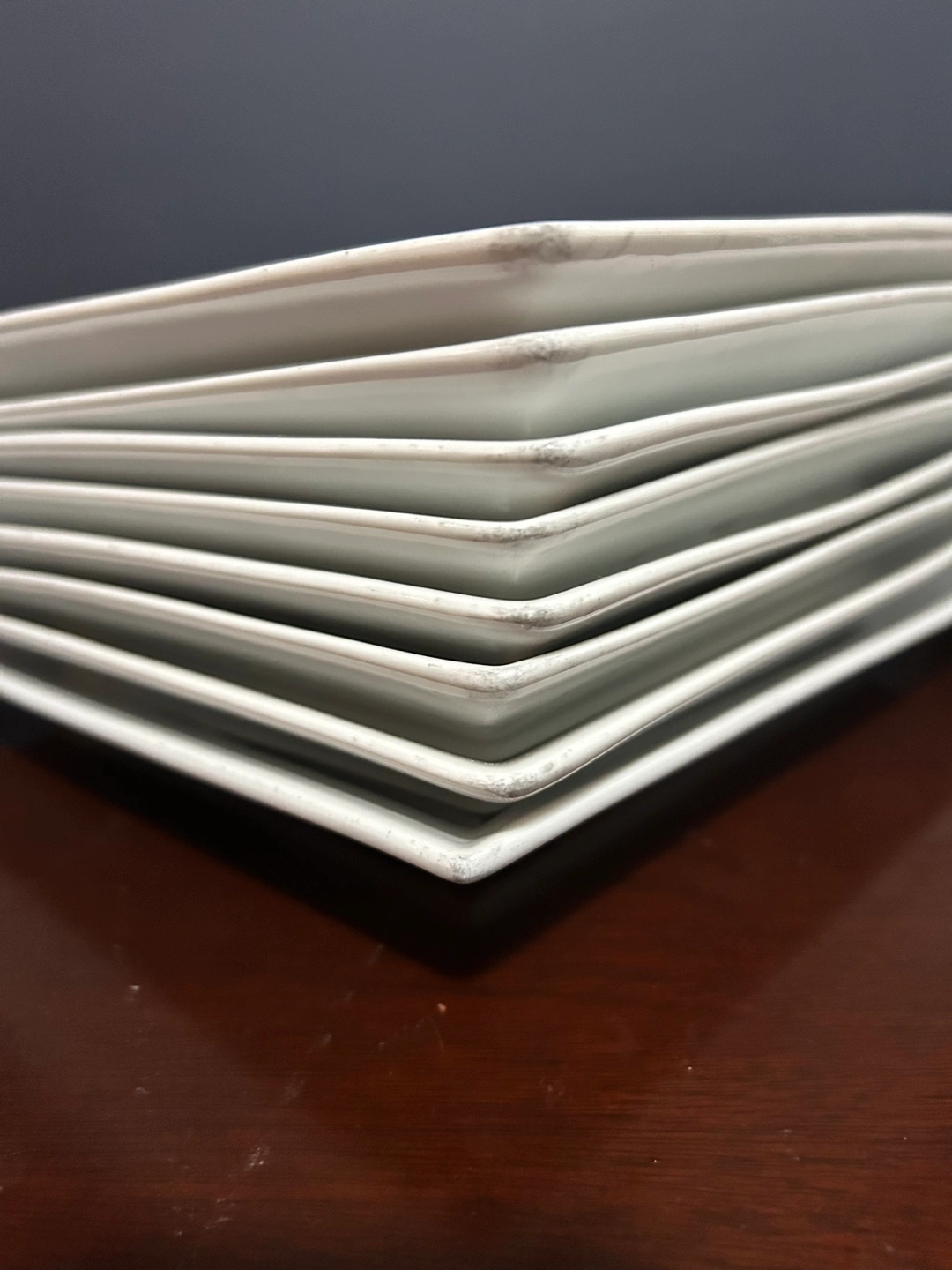 There are some chips (shown in photos) and graying on the corners (which will clean very easily with a Mr. Clean Magic Eraser and look brand new).