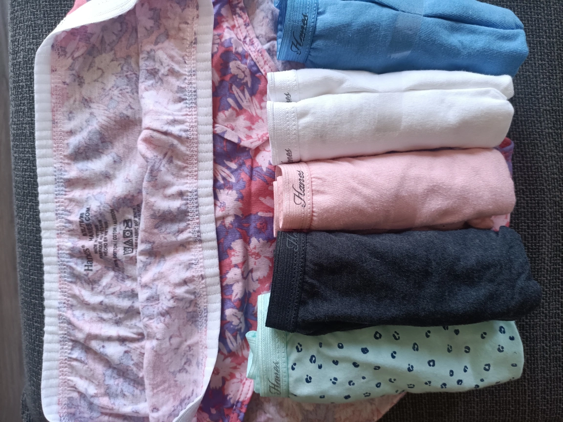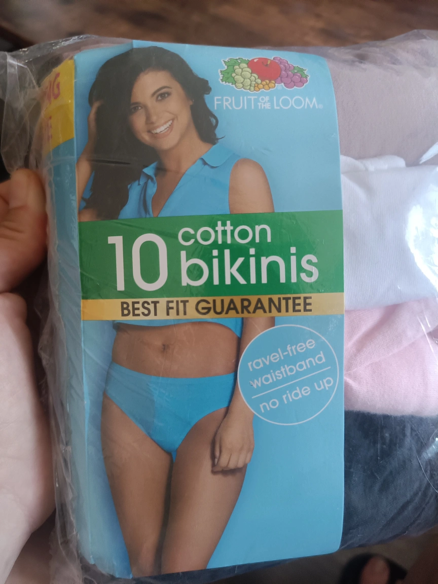 Selling a pack of Fruit of the Loom cotton bikinis. This pack includes 10 assorted colours and patterns. Size 8