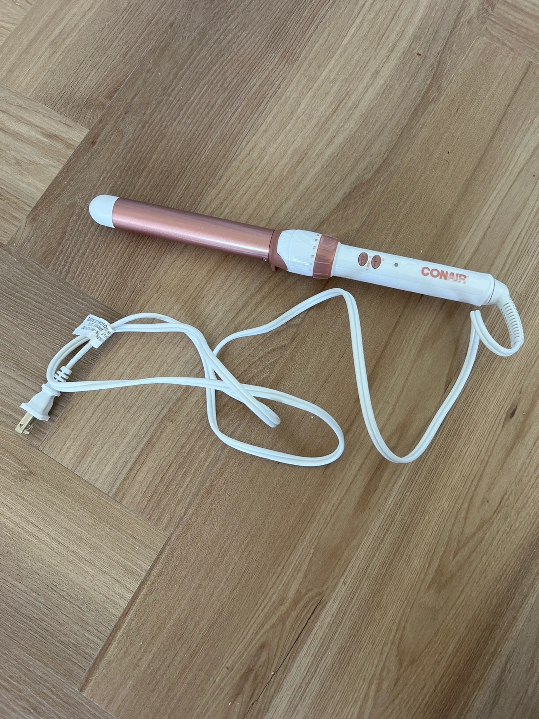 It's perfect for creating beautiful curls and waves. It is white and rose gold.