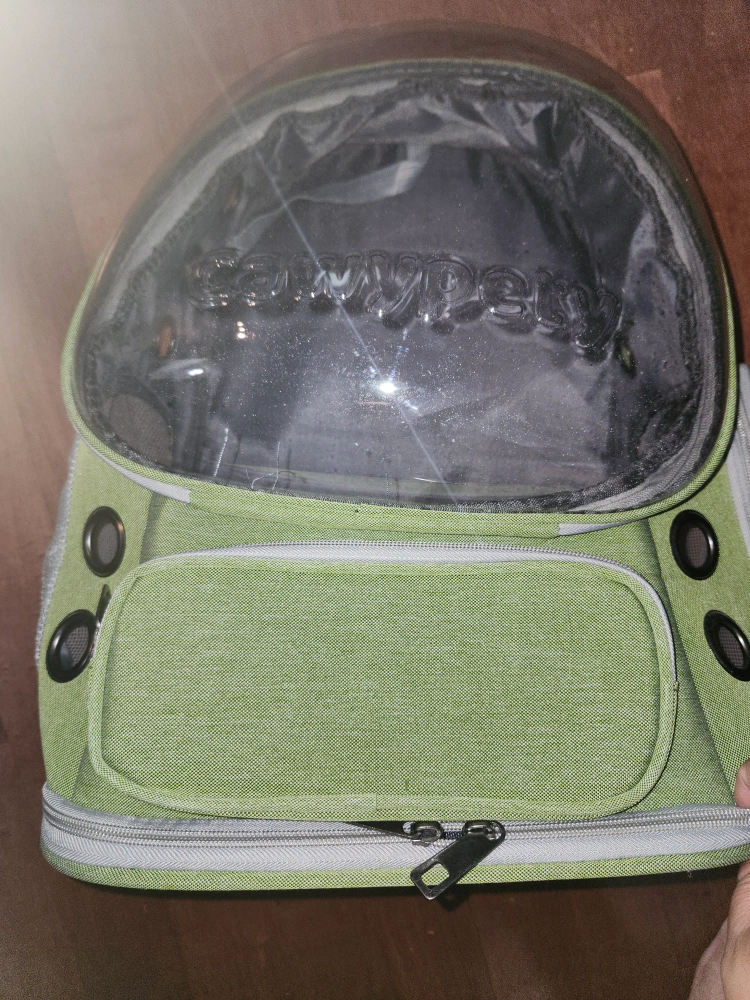 Looking to sell this Cawypety pet carrier backpack! It's in great condition and perfect for taking your furry friend on adventures. The backpack is green and features a clear bubble window so your pet can enjoy the view.13.4L x 11W x 16.5H Centimetres