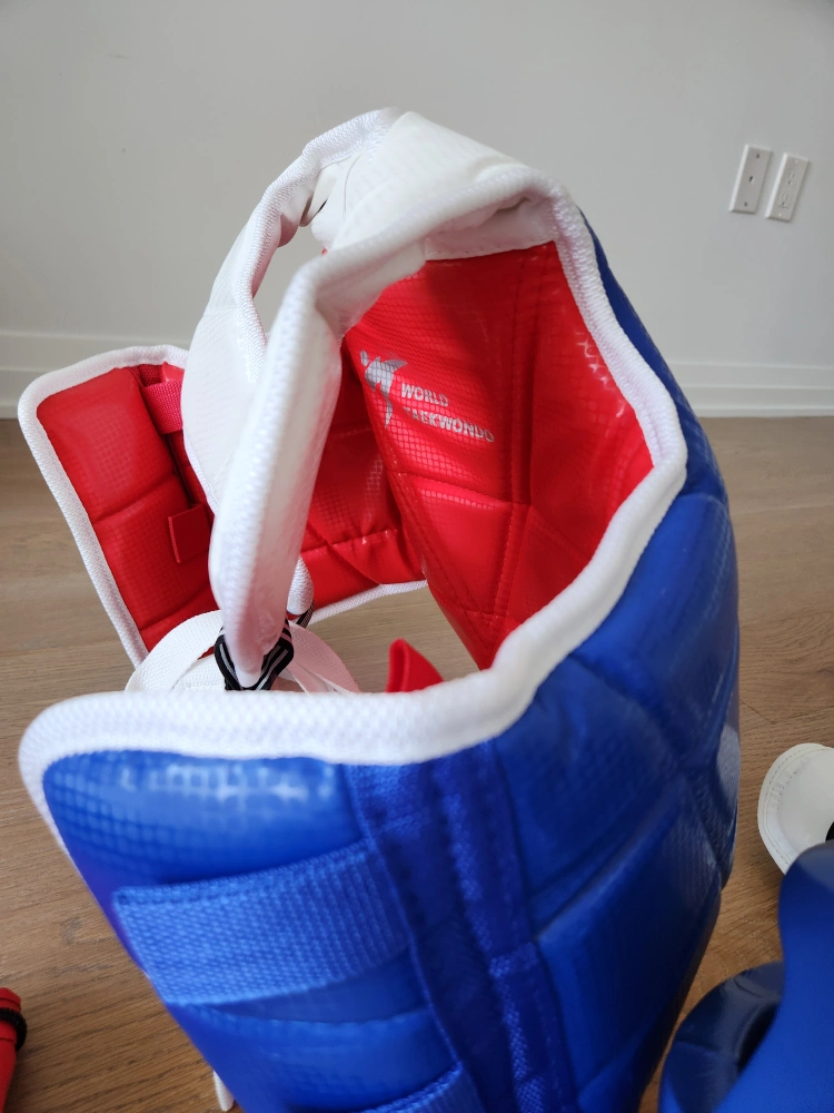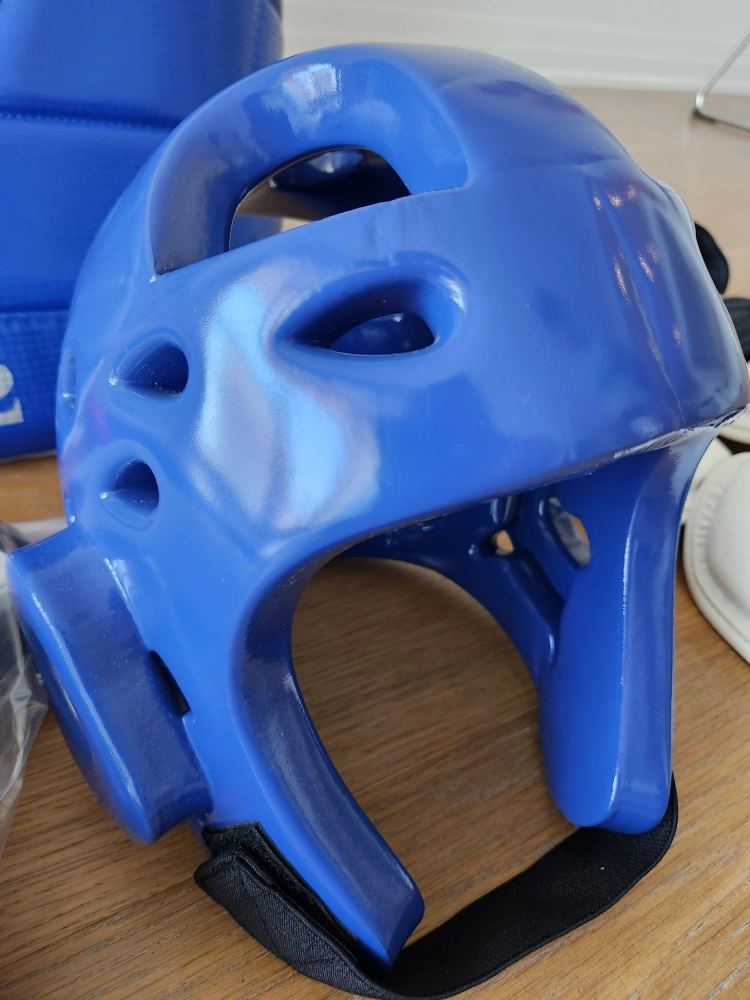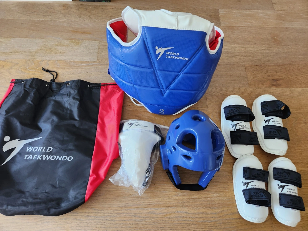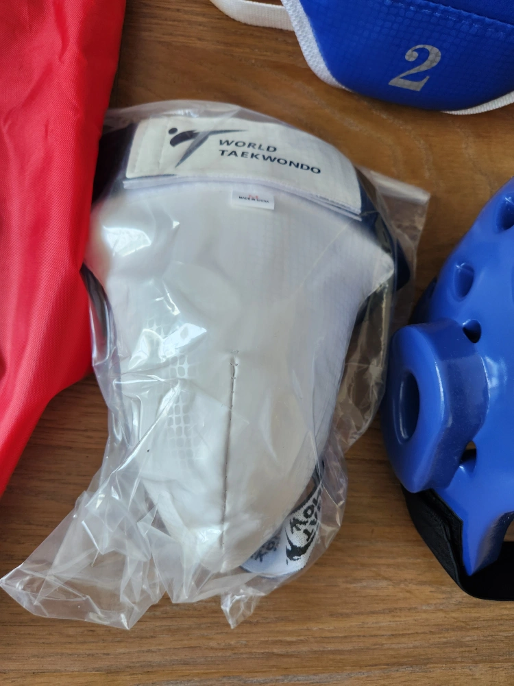 but he hesitate to continue the taekwondo, that we had to sell these never used gears.