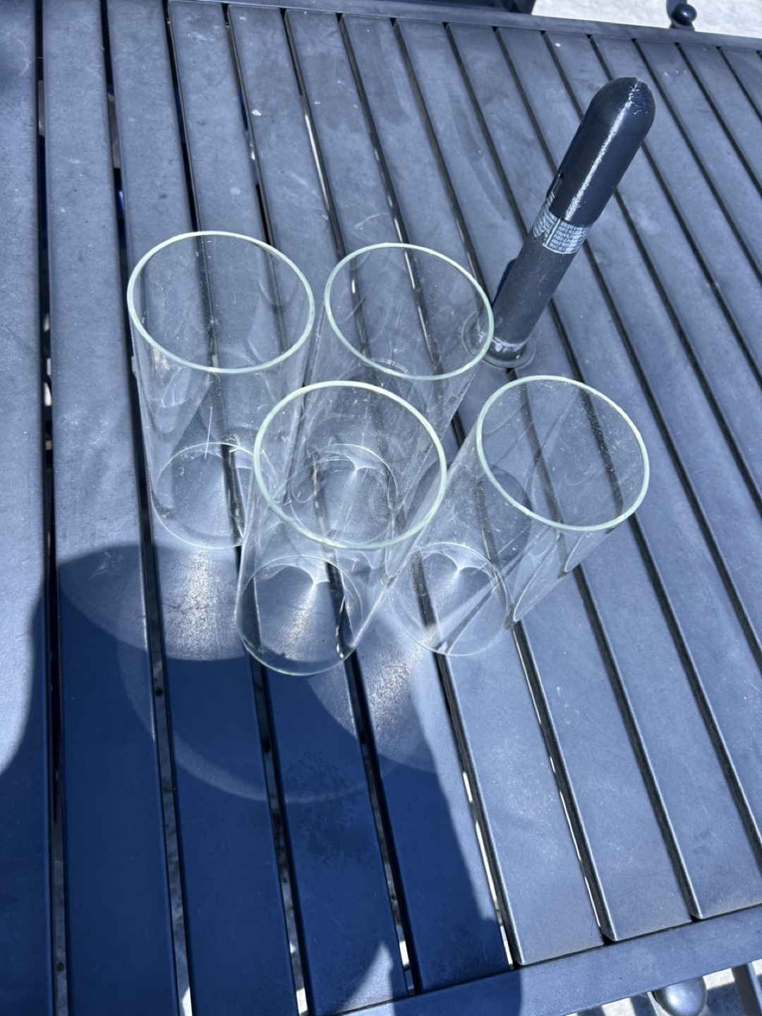 A free set of four clear glass cylinder vases. They're in great condition and would be perfect for floral arrangements or as decorative pieces around the house