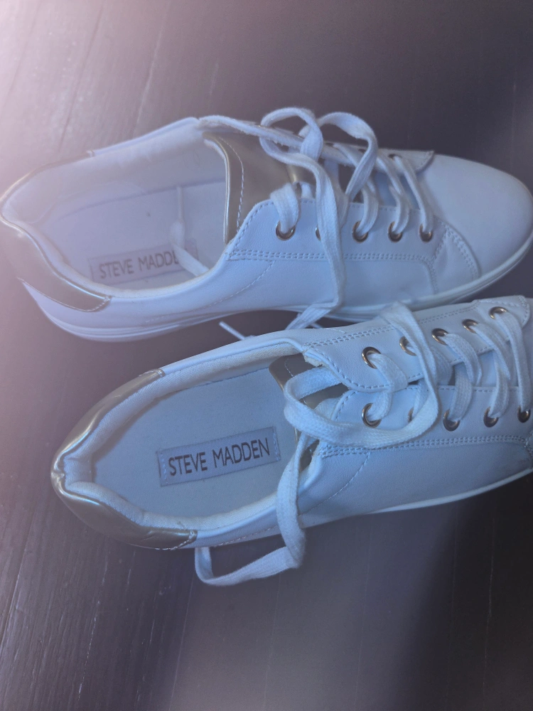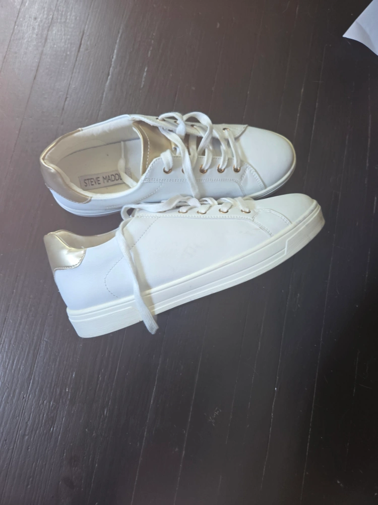 15Selling a pair of Steve Madden sneakers in white. They're in great condition and ready for a new home!