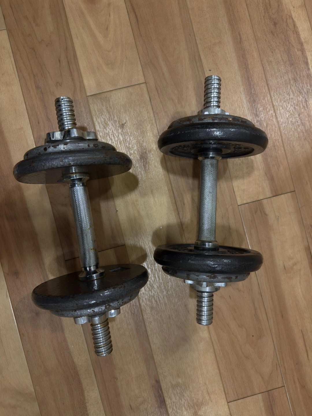 Selling a set of adjustable dumbbells! They're in good condition and ready for your home workouts. Great for building strength and toning muscles. Perfect for anyone looking to add some weight training to their routine