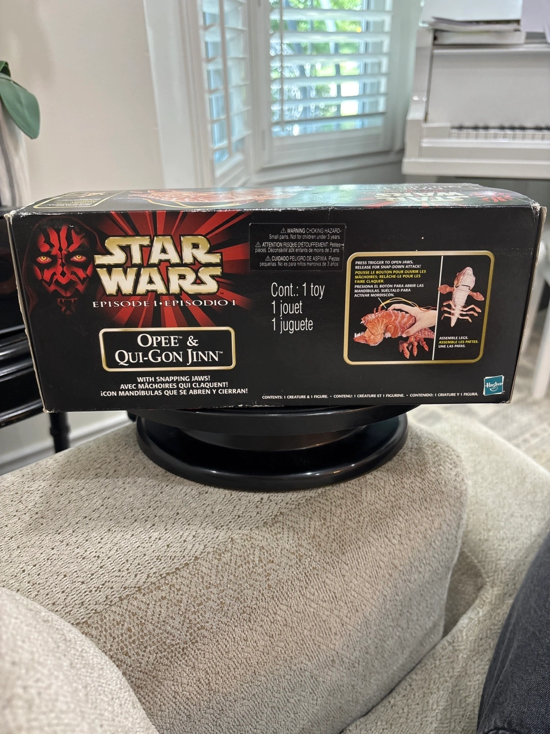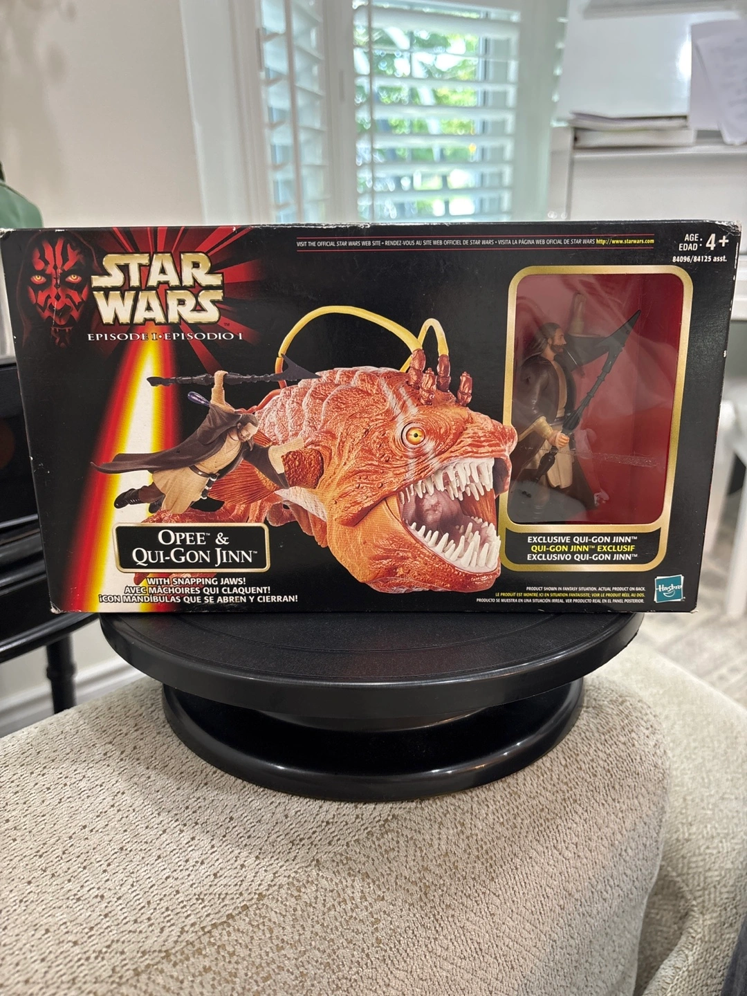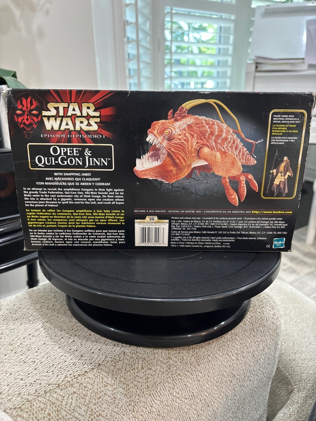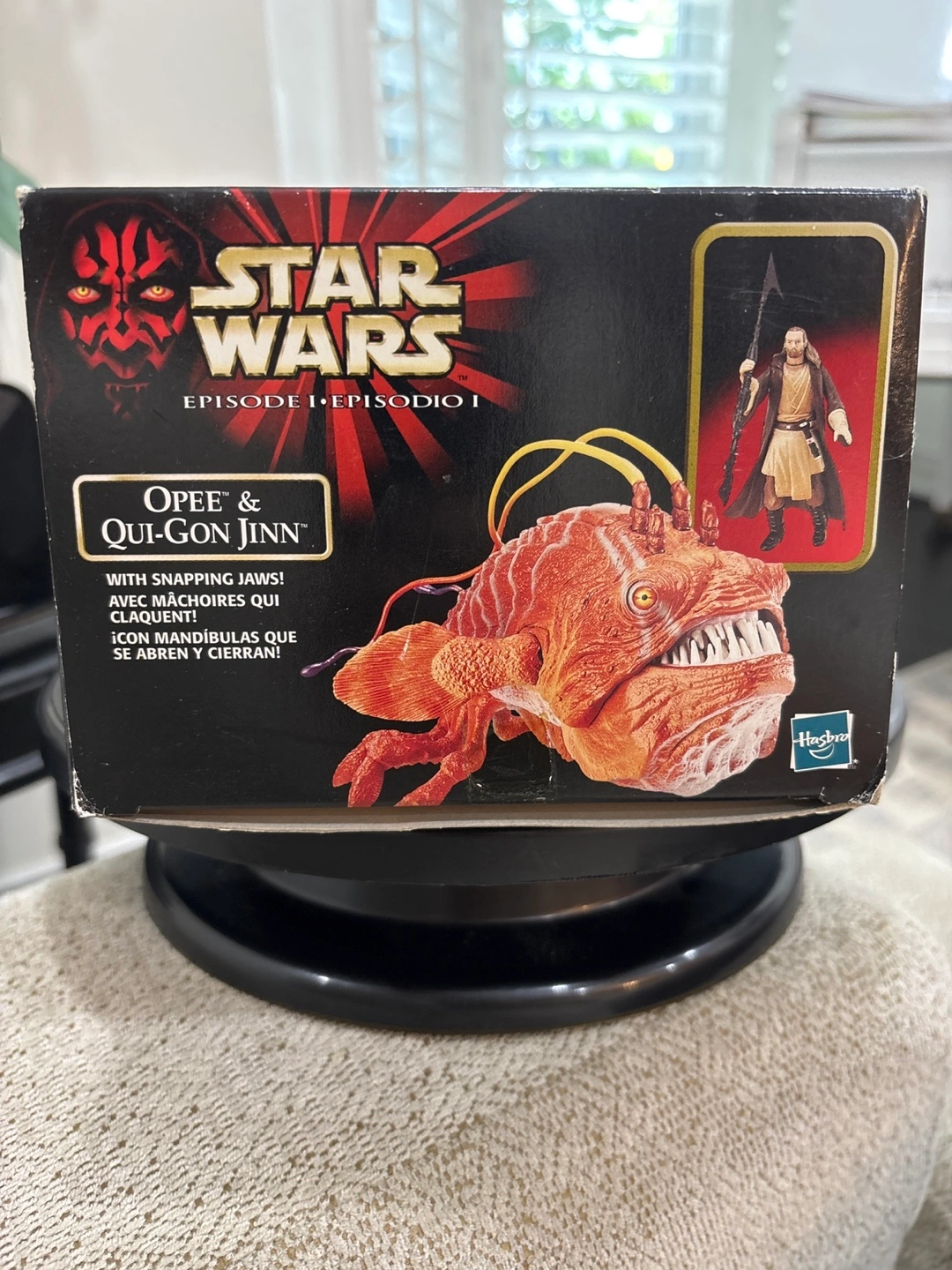 Selling a NEW / OPEN BOX 1998 Star Wars Episode 1 Opee & Qui-Gon Jinn action figure. It comes with the original box. The box indicates it includes 1 creature and 1 figure. A great addition to any Star Wars collection!