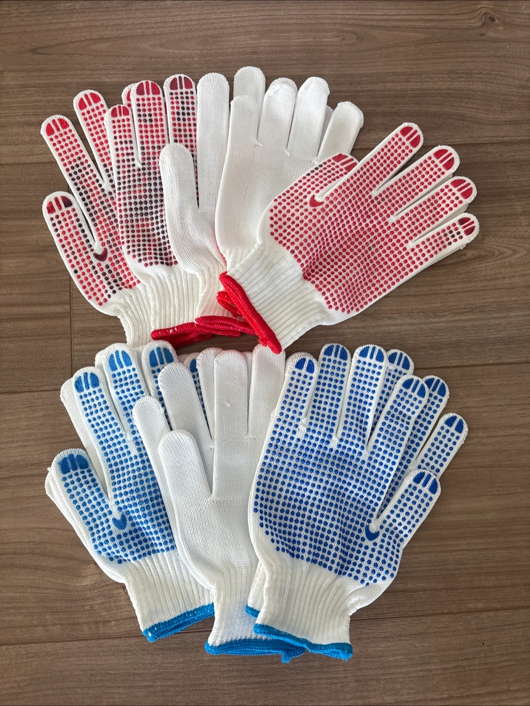 180Selling 6 pairs of brand new medium-sized work gloves! They have a white base with either red or blue dots for extra grip. Great for any tasks around the house or in the garden