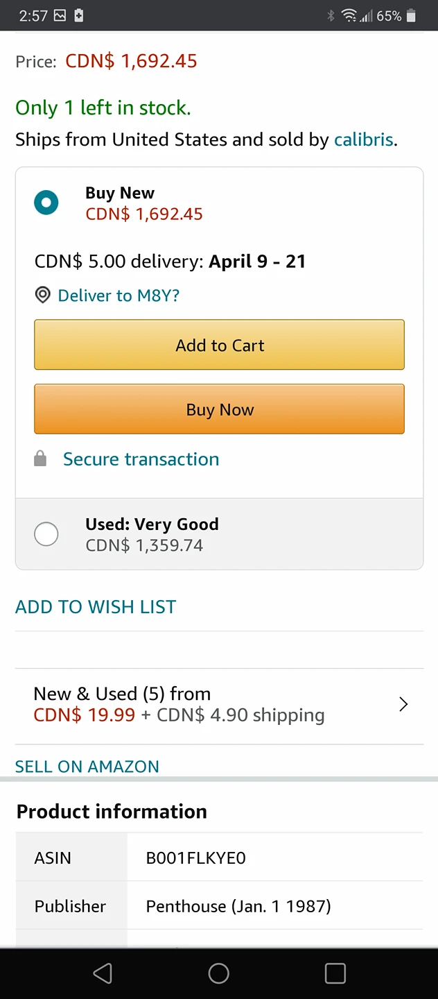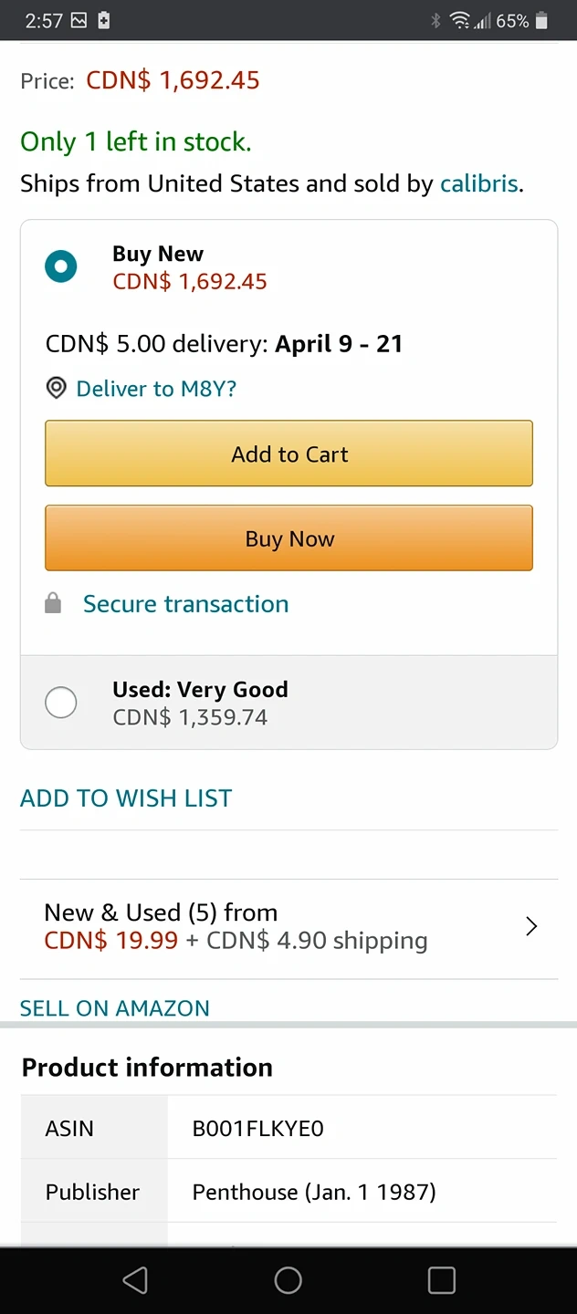 In EXCELLENT CONDITION, keeping in mind this is a magazine from 1987. Amazon is selling it between $1,300 and $1,700. and it's not available in on eBay.