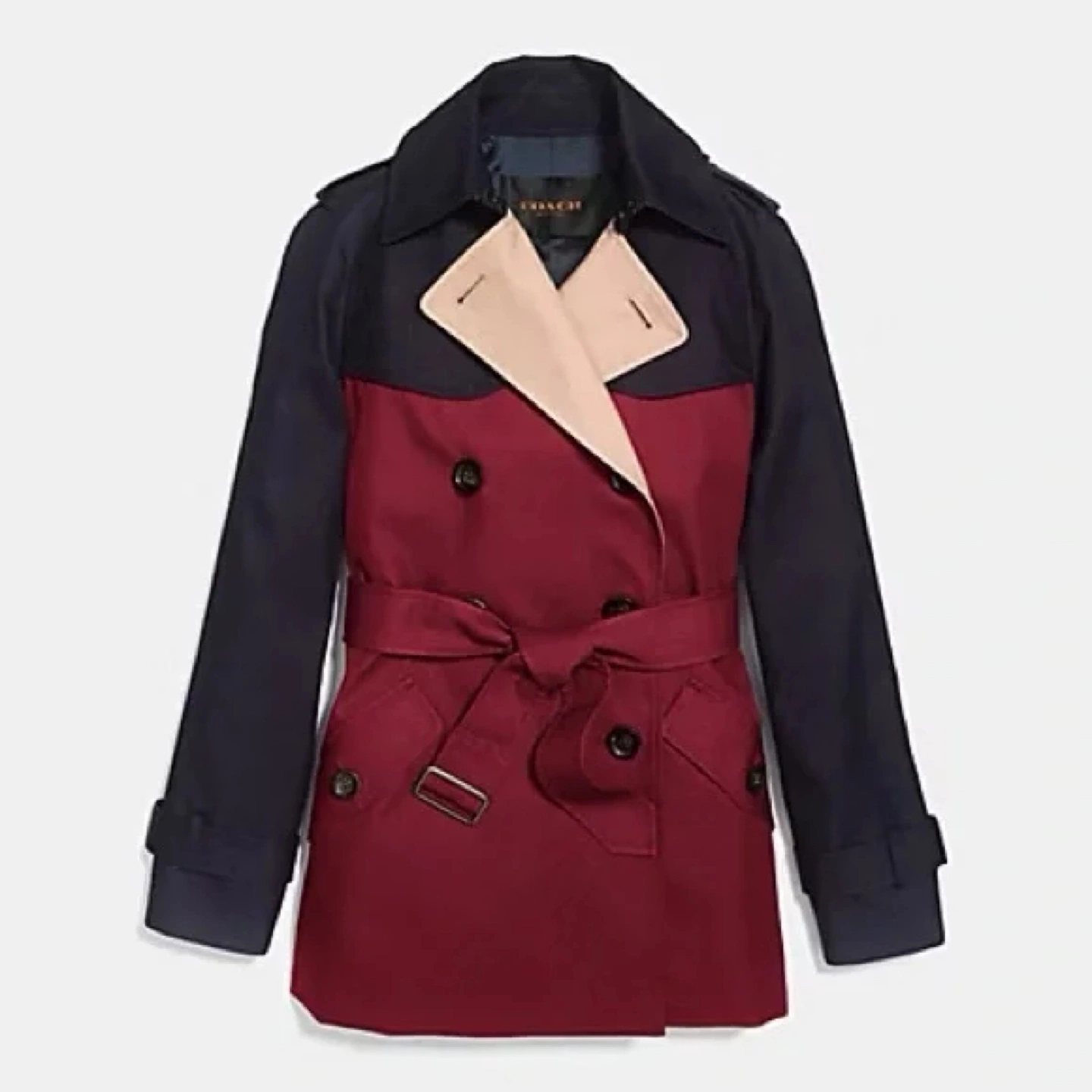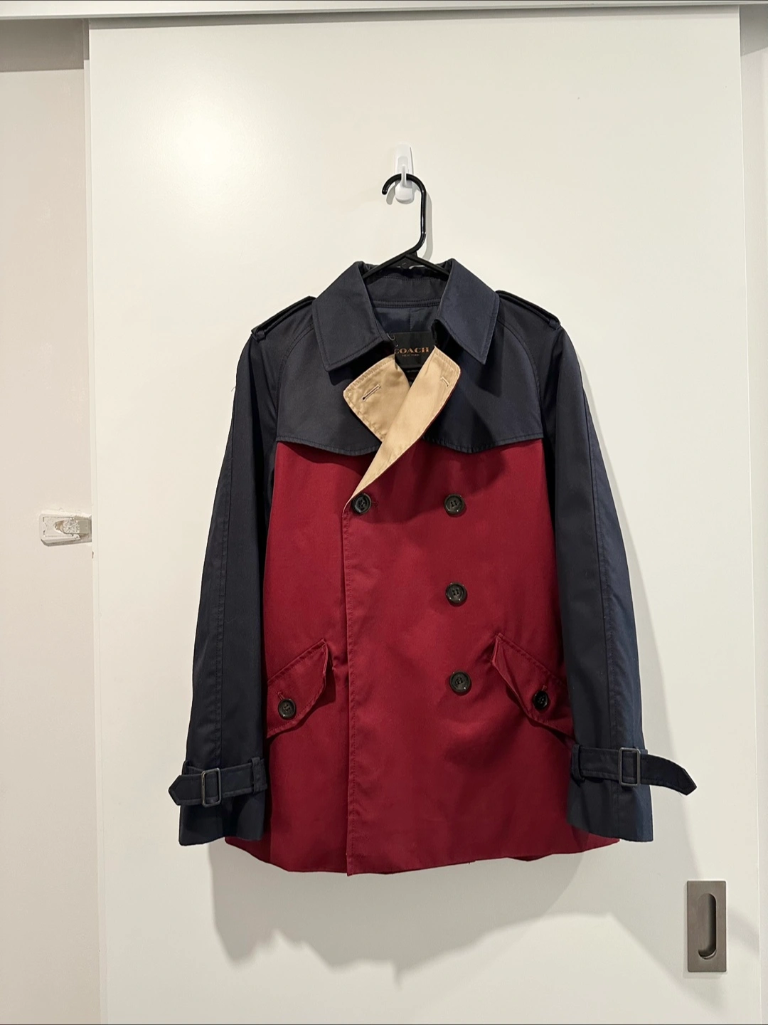 Coach Belted Trench Coat Jacket- Beige Red Navy Size S
