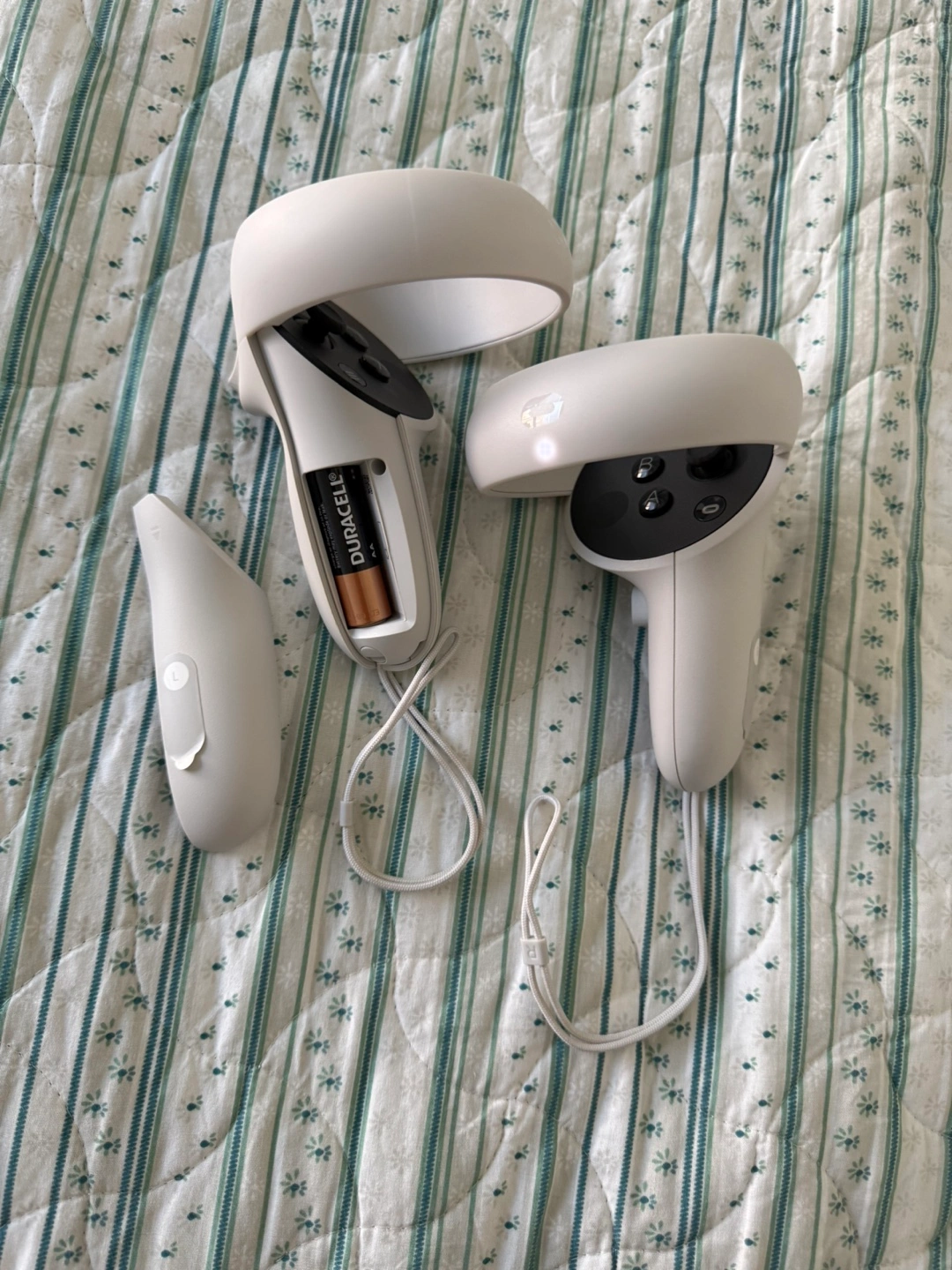 Two controllers (hand-tracking technology, touch pads, wrist bands) with free Duracell batteries