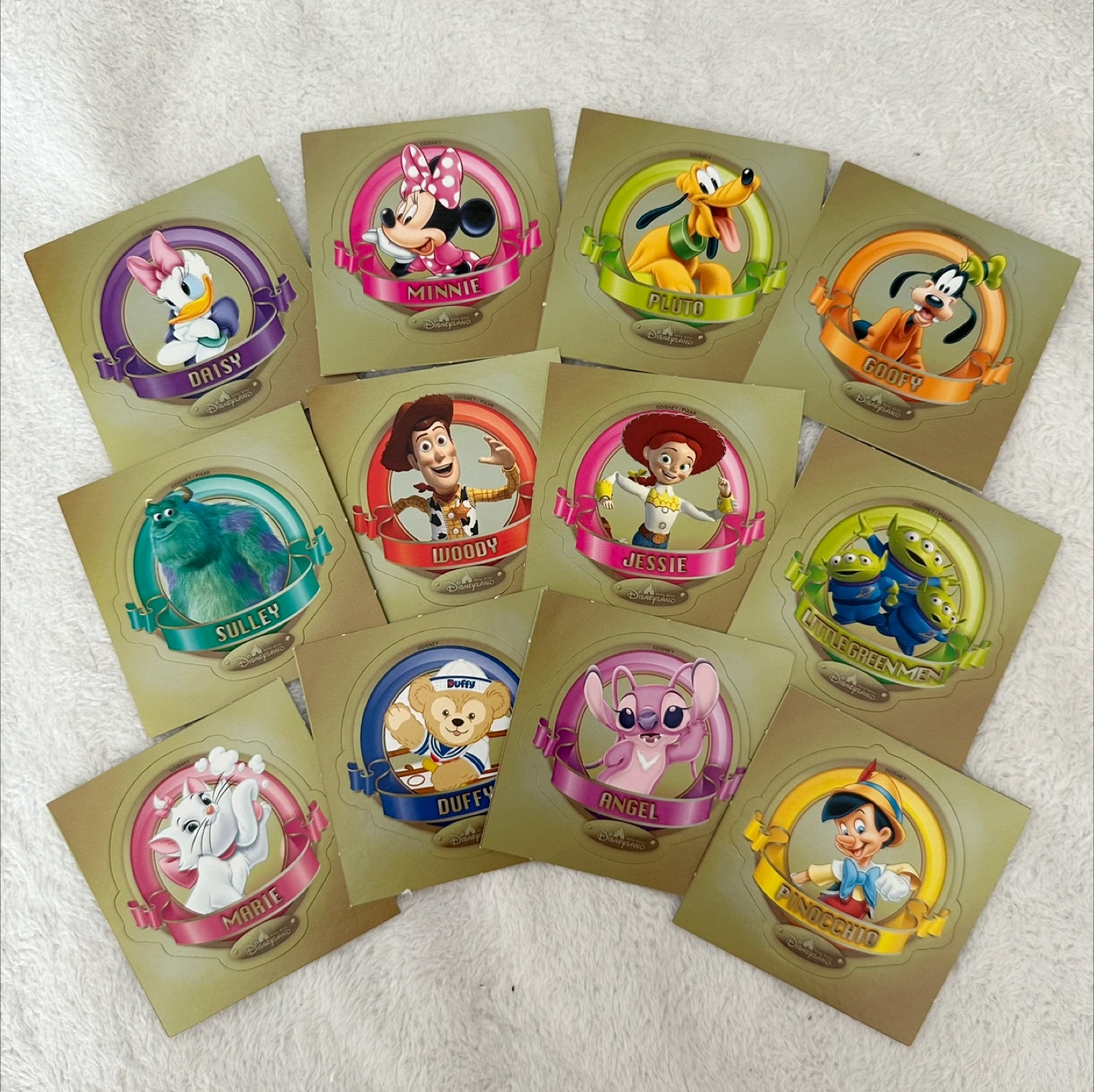 Selling a set of 12 Disney Disneyland character stickers. They are Hong Kong Disneyland Exclusive and have its branding. They were not for sale even in Disneyland and are super rare to find.