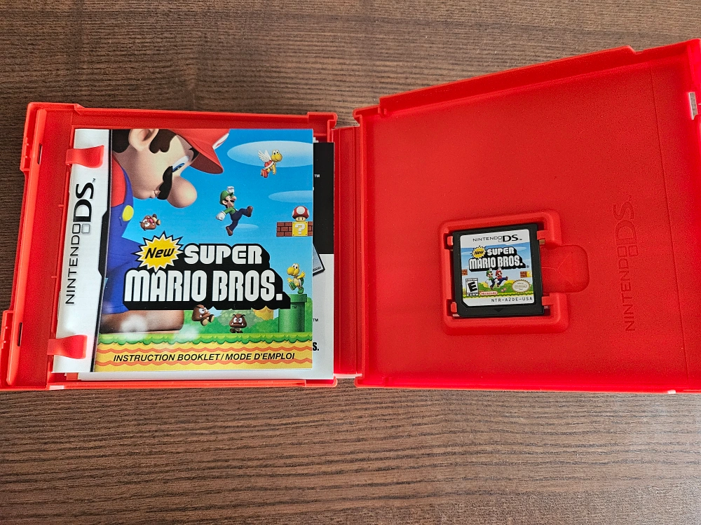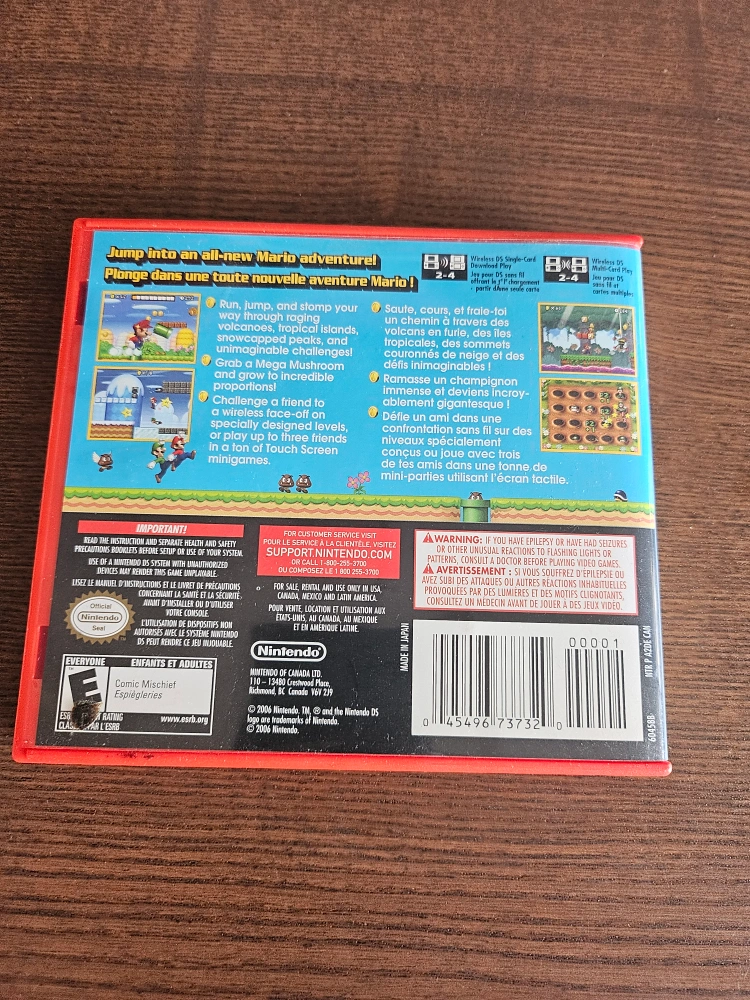 Selling a used copy of New Super Mario Bros. for the Nintendo DS! Jump into an all-new Mario adventure. Run, jump, and stomp your way through tropical worlds, snowcapped peaks, and unimaginable proportions. Challenge a friend to competitive minigames in a ton of Touch Screen minigames