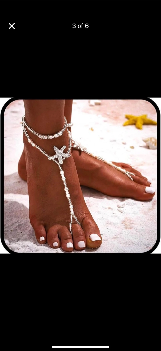 Add a touch of sparkle to your beach days with this cute silver anklet foot chain! Featuring delicate beads and a charming starfish detail, it's the perfect accessory to complete your summer look
