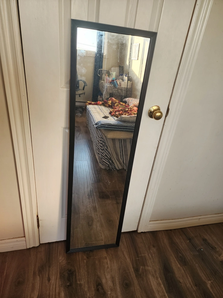 Selling a full-length mirror with a sleek black frame! It's perfect for checking out your outfit before heading out the door. It's in great condition and ready to find a new home