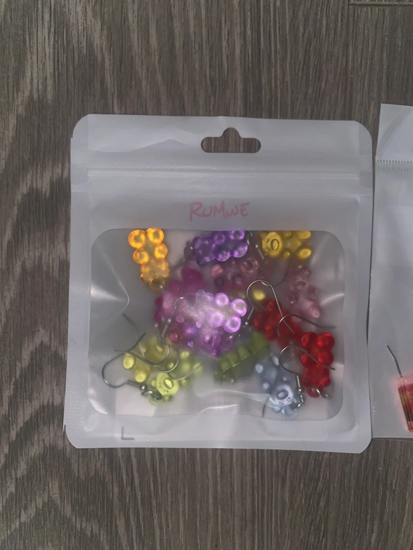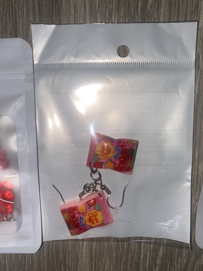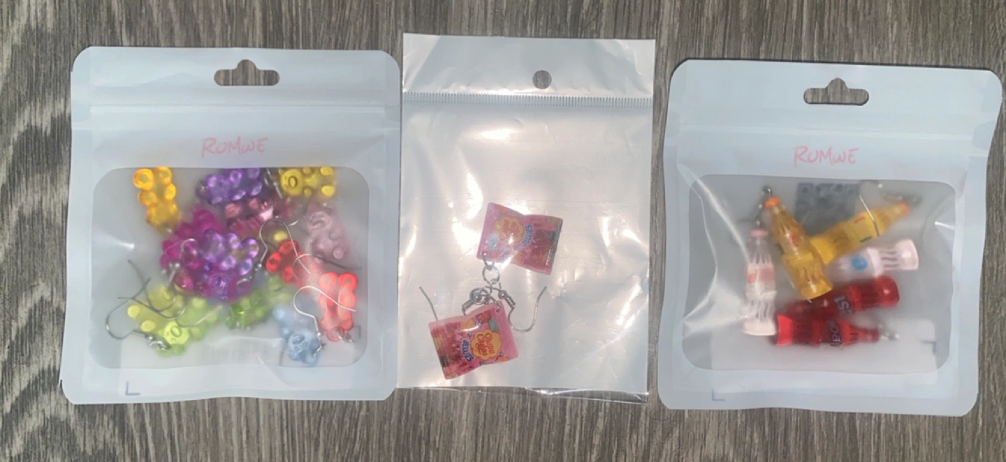 365Sets of fun earrings! They're all in great condition and come in their original packaging. Perfect for adding a pop of fun to any outfit! $2 each 1. Gummy Bears 2. Chupa Chups 3. Soda Bottles