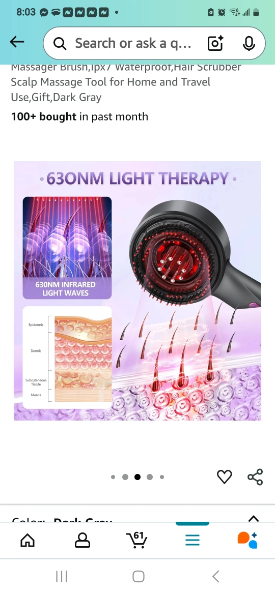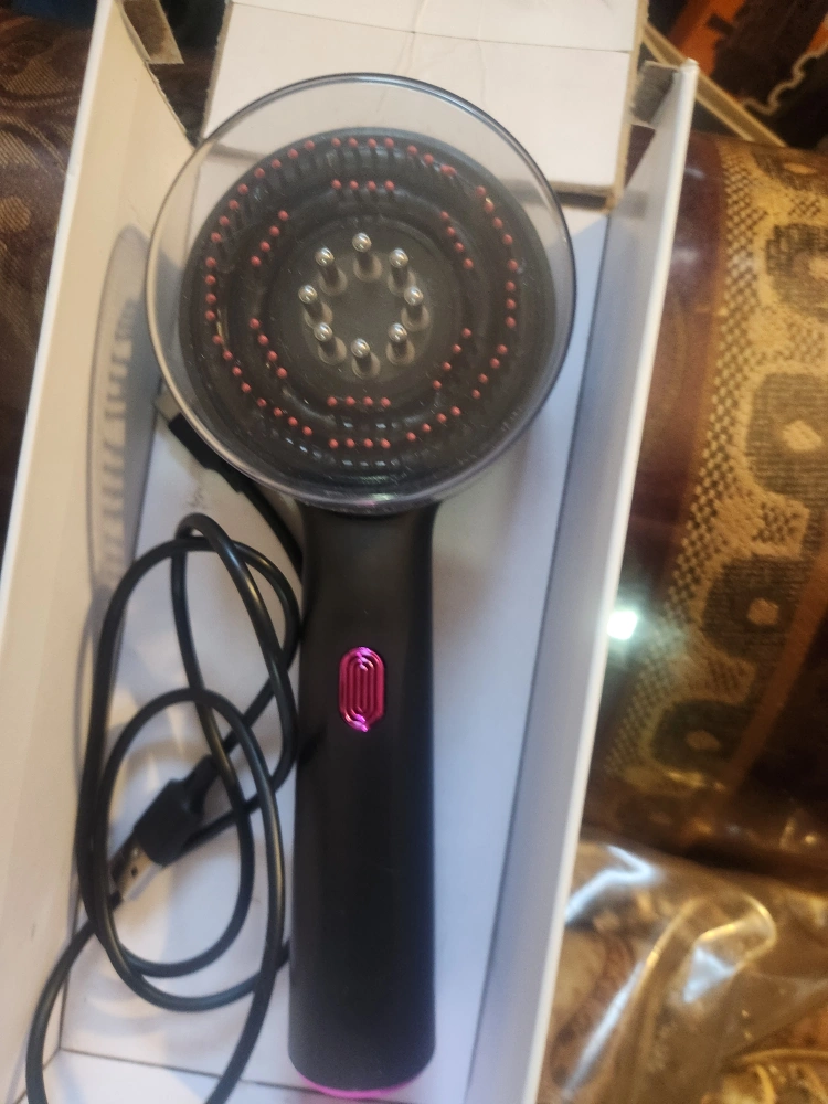 This is a scalp massage comb that is waterproof. It has 630NM light therapy and is a hair scrubber. It's great for home and travel use. It has 72 roots and 8 roots. It also has a 6 ML large-capacity liquid guide tank.