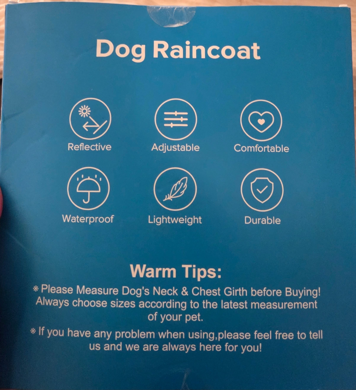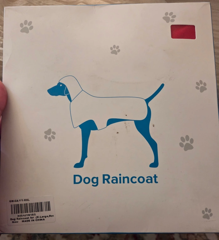 This new dog raincoat is size X-Large and red. It's reflective, adjustable, comfortable, waterproof, lightweight, and durable.