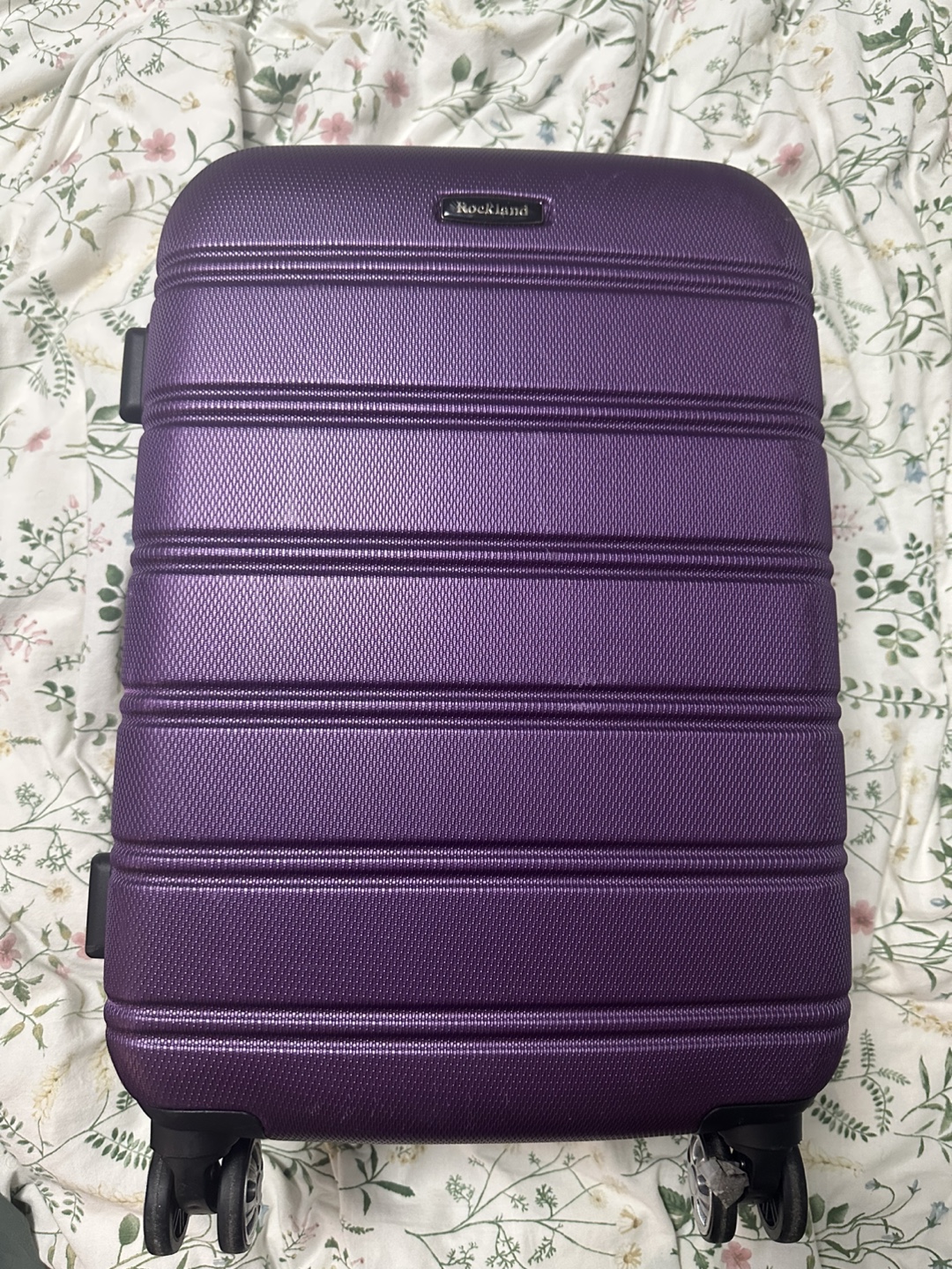 Selling a purple hardside carry-on suitcase from Rockland. It's in great shape and ready for your next trip! Perfect for fitting in the overhead bin. Only used for 2 trips.