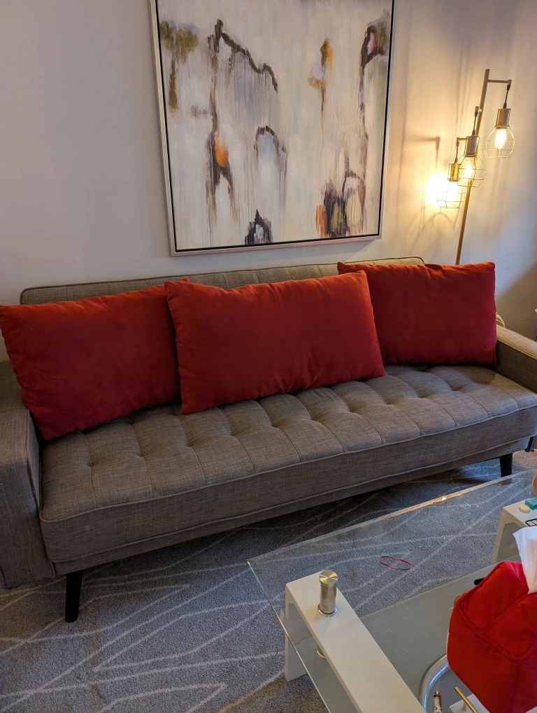 Selling 3 suede accent pillows. Pillows are stain free, scuff free, from a pet free home and in perfect condition. An attractive addition to a large couch, lounger or bed. 20$ for all three.