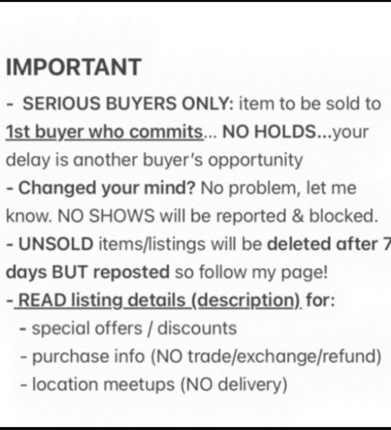 SERIOUS BUYERS ONLY / FINAL SALE / Cash Payment at pickup / NO HOLDS (Items will be sold on a FIRST-COME/PAYMENT-FIRST-SERVE basis!)