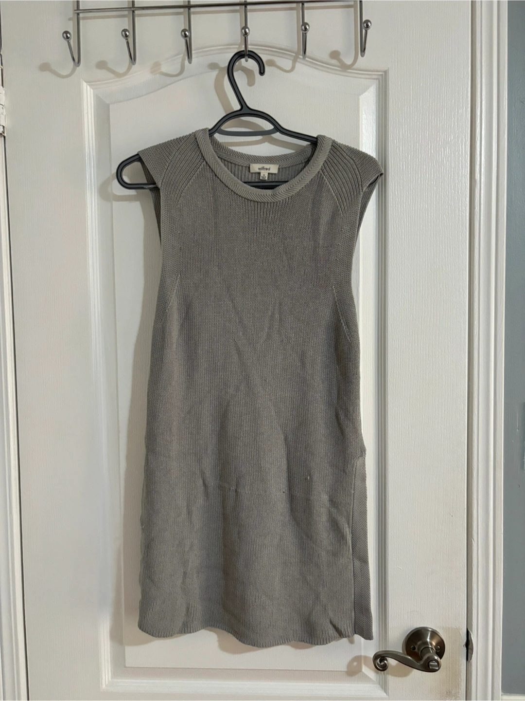 10Selling a Wilfred Free sleeveless knit top in a lovely grey colour. It's in great condition and ready for a new home! Perfect for layering or wearing on its own during warmer days. A versatile piece for any wardrobe!