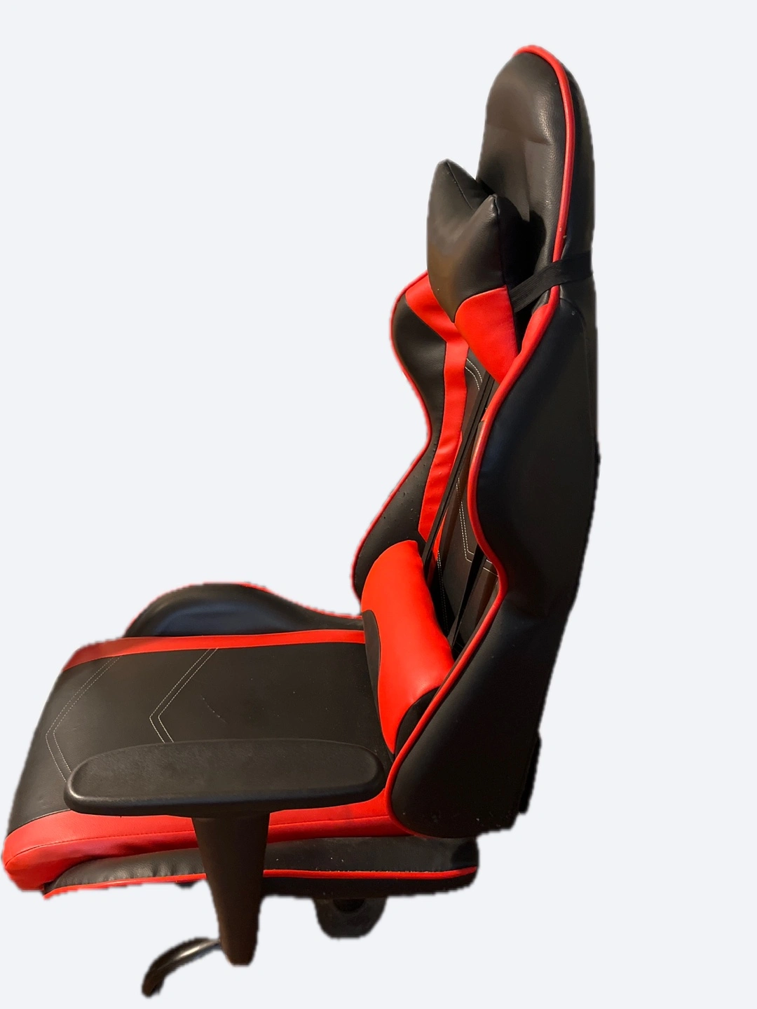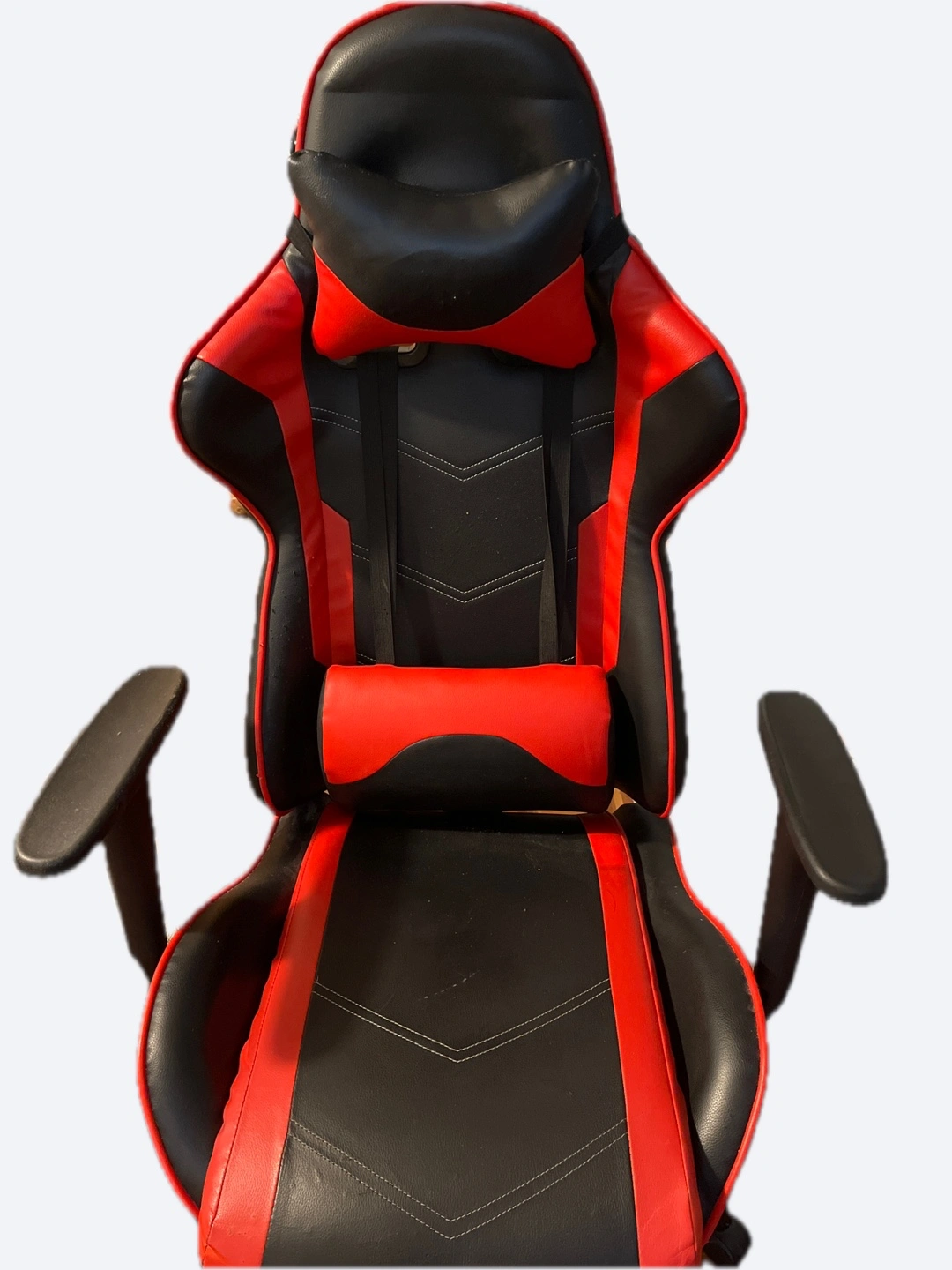 Selling a gaming chair in red and black. It has neck and lumbar support. Positions can be adjusted for long hours of use.