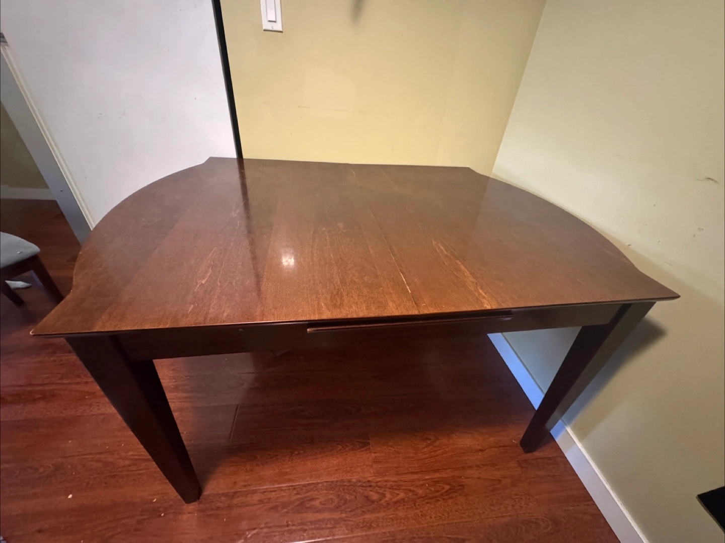 Looking for a practical and stylish dining table? This dark brown extendable table comfortably fits 6 people, and can be expanded to seat 8 guests – perfect for family meals, game nights, or gatherings.