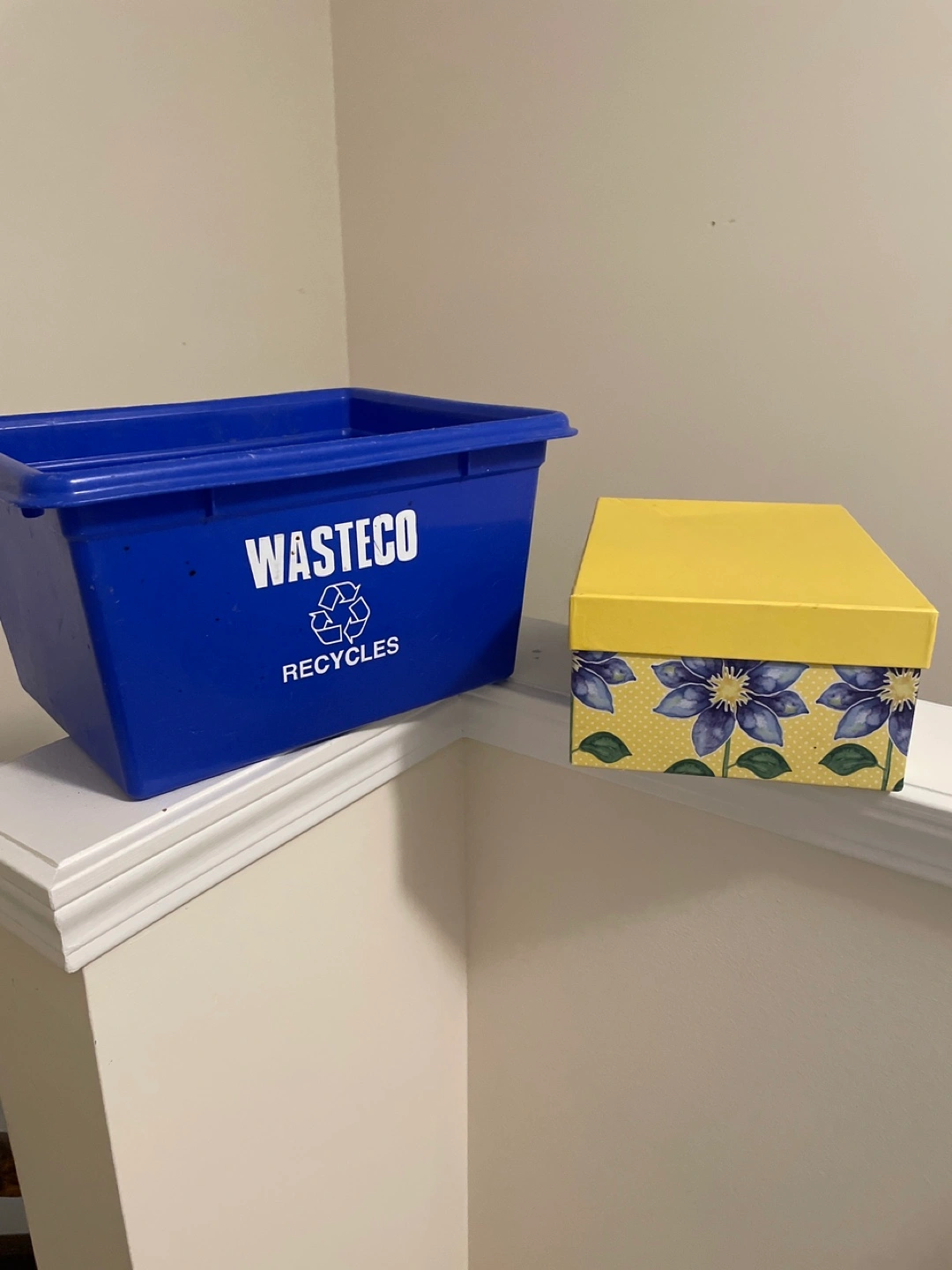Selling a blue Wasteco recycle bin, perfect for keeping your recyclables organized with box for storage like new