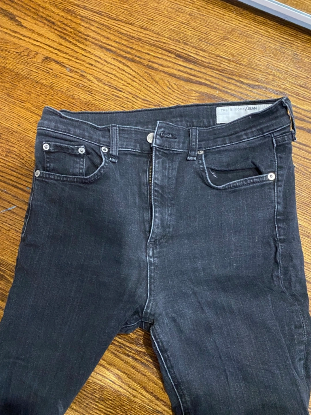 Selling a pair of Rag & Bone faded black denim jeans. Size 29. They are in good condition and ready for a new home or can be repurposed into a pair of high waisted shorts.