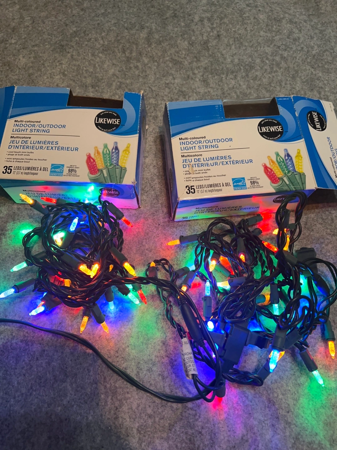 1000+Brand New. Selling a set of LikeWise multi-coloured indoor/outdoor light strings. Each string has 35 LEDs and is 11.2 m (37 ft) in length. Perfect for adding some festive cheer to your home or garden!