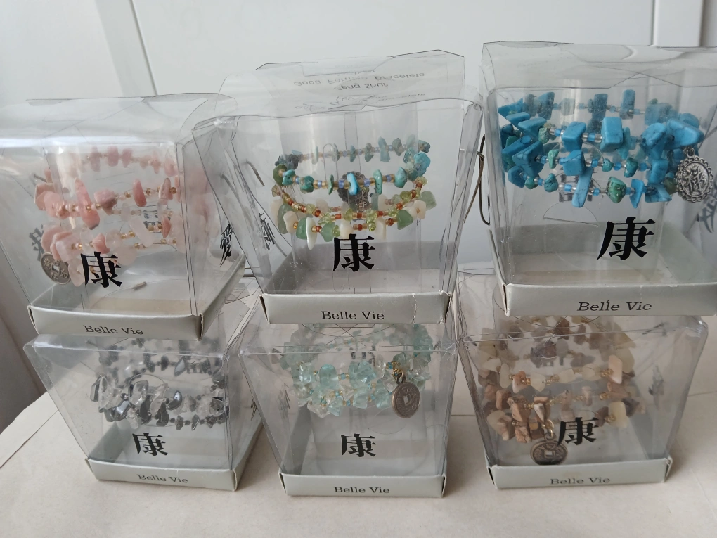 I'm selling these Feng Shui Good Fortune Bracelets by Belle Vie. 3 bracelets per box. Each bracelet is meant to bring good fortune and is still in its original packaging. They come in a variety of stones, each with its own meaning: