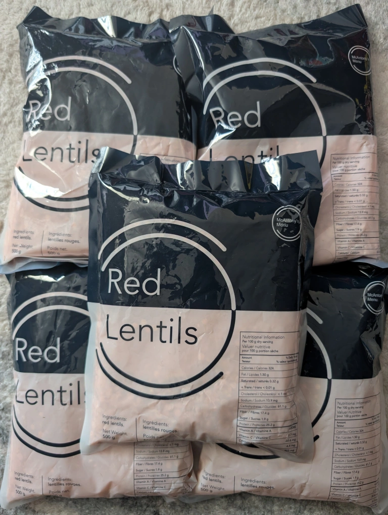 Selling bags of McAntony's Menu Red Lentils! Each bag contains 500g of red lentils, perfect for soups, stews, or salads. A great source of fibre and protein!