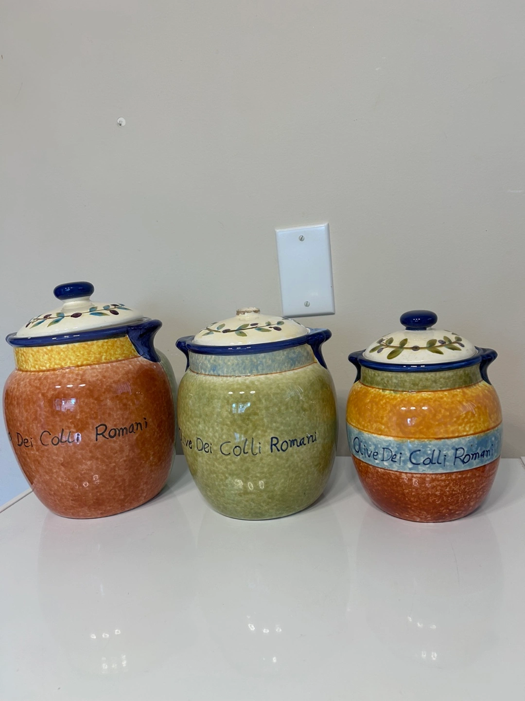Buy & SellOlive Dei Colli Romani Canister SetOlive Dei Colli Romani Canister Set$5Selling a set of three Olive Dei Colli Romani canisters. They are in good condition (one top lid is broken) $10 for the setWHERE TO MEETPoplarwoodView MapSELLERDiannaLee River Place231 review0 chats·0 favorites·23 views