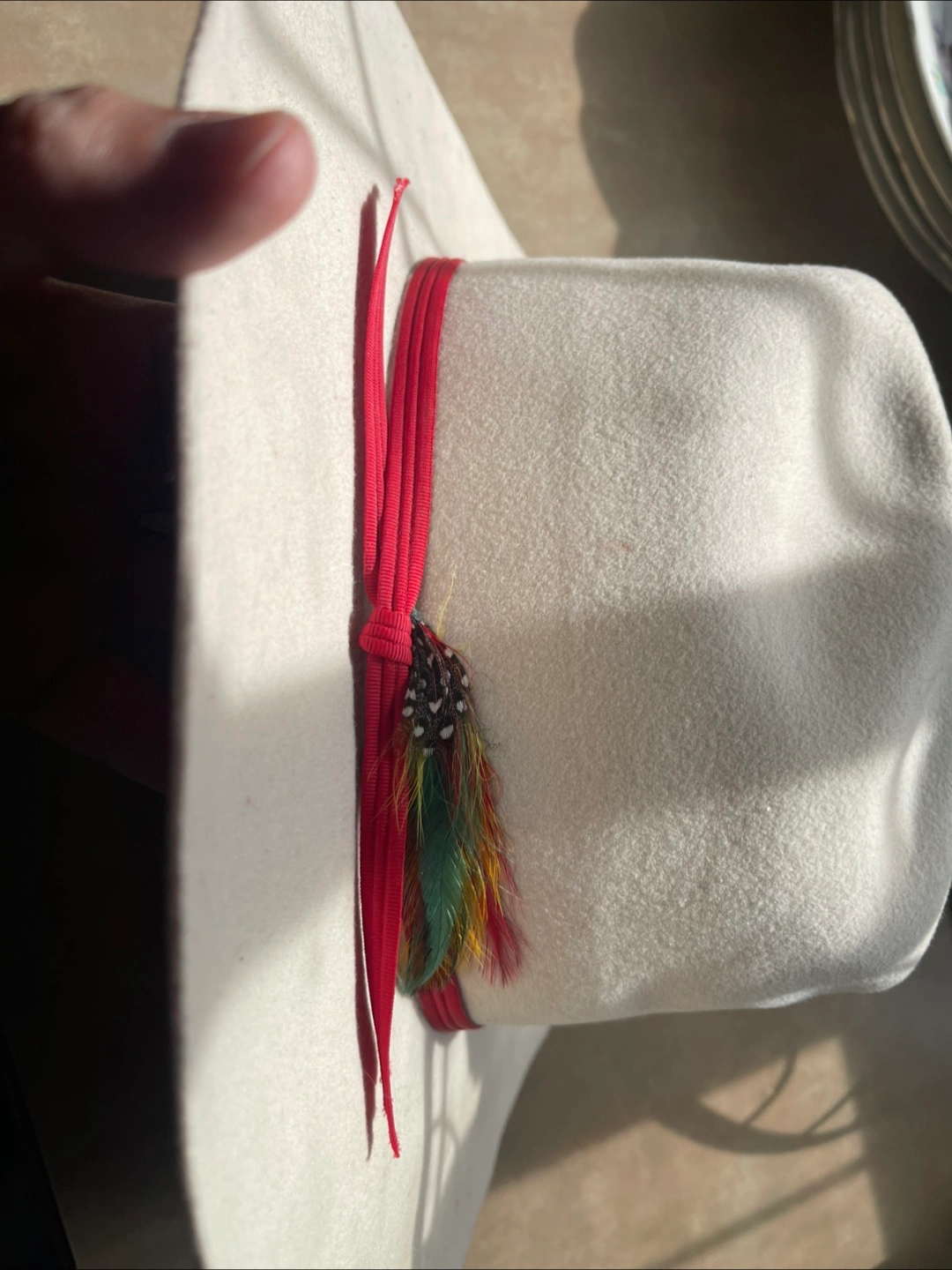π¨π¦ Selling a stylish white fedora hat. It's made of 100% polyester and is a size 7 1/4. Perfect for adding a touch of class to any outfit!