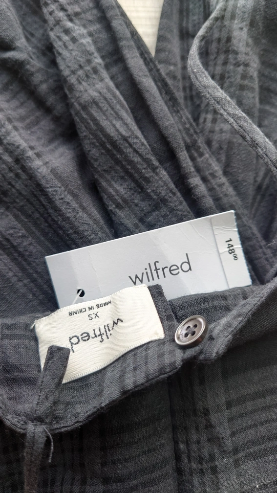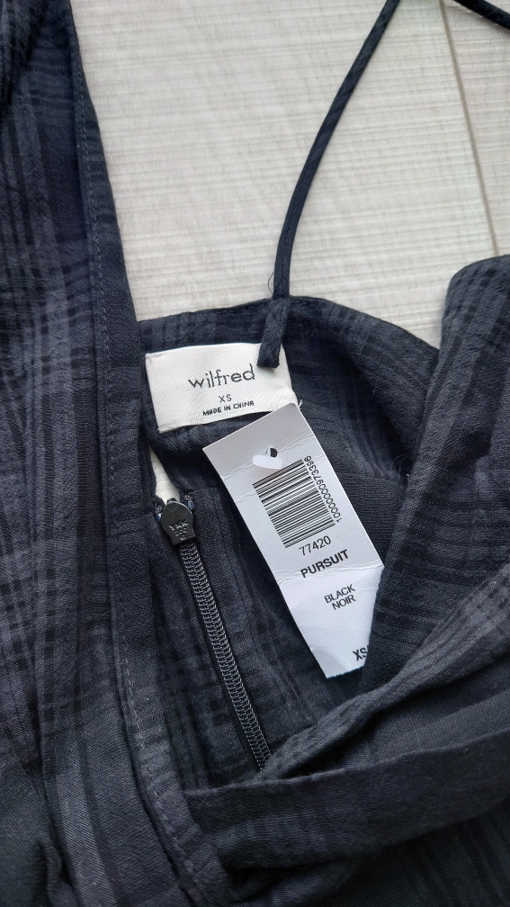 BNWT. Selling a Wilfred Pursuit in Black Noir, size XS. bought it and never worn. it's a long camisole that has a wrap design and is perfect for a night out or a casual day.