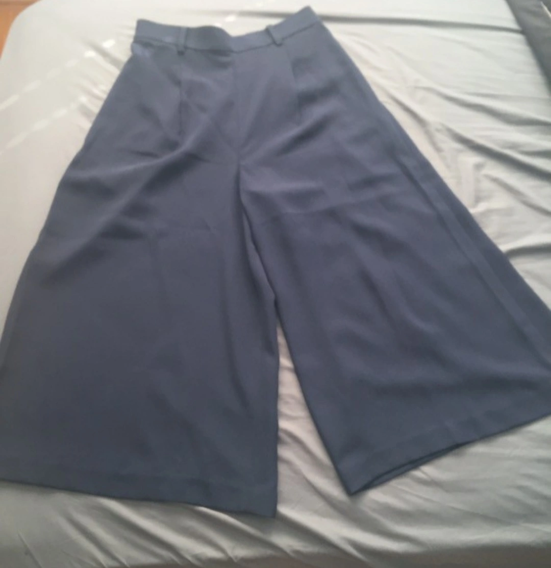 Flowy navy blue culottes in great condition! These wide-leg pants are super comfy and stylish, perfect for a casual day out or dressing up for work.
