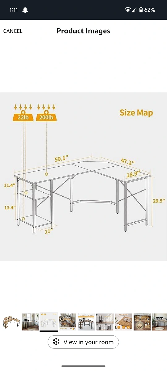 The desk's dimensions are approximately 59.1" x 47.2" x 29.5". Great for a home office or study space!